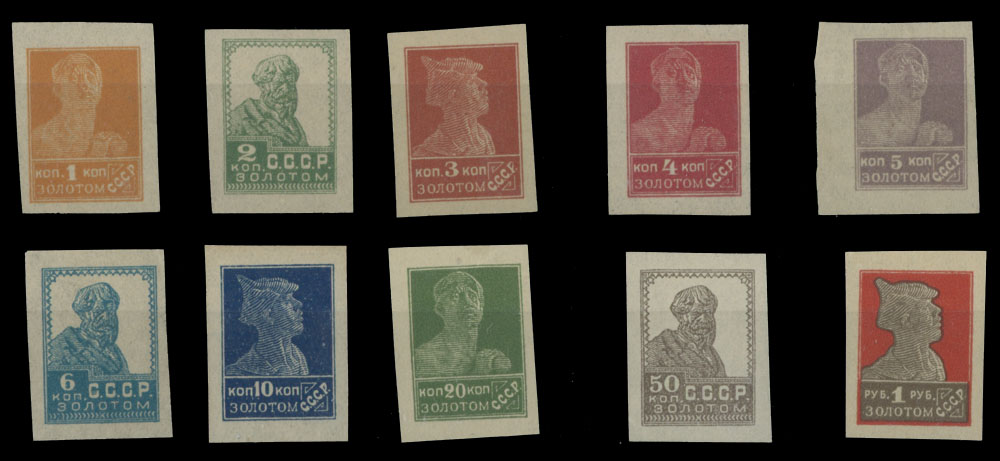 1923, definitive issue, 1k-1r, imperforate complete set of ten, litho printing, ample to large margins, full OG, NH, VF, C.v. $236, Est. $150-$180 , Scott #250-59