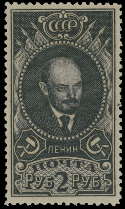 1926, Lenin, 2r black violet, perforation 12½, printed on watermarked Borders and Rosettes paper, full OG, NH, VF, C.v. $3,250, which seems to be a mistake, Est. $300-$350 , Scott #343a