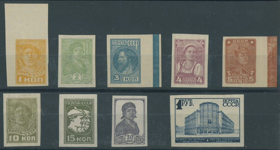 1931-32, definitive issue, 1k-1r, imperforate complete set of nine, full OG, NH or LH (4k, 10k and 30k), VF, C.v. $583, Est. $300-$350 , Scott #456-67