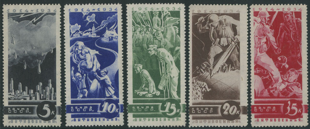 1935, Anti-War Propaganda issue, 5k-35k, complete set of five, fresh colors, full OG, NH, VF, C.v. $1,075, Est. $600-$700 , Scott #546-50