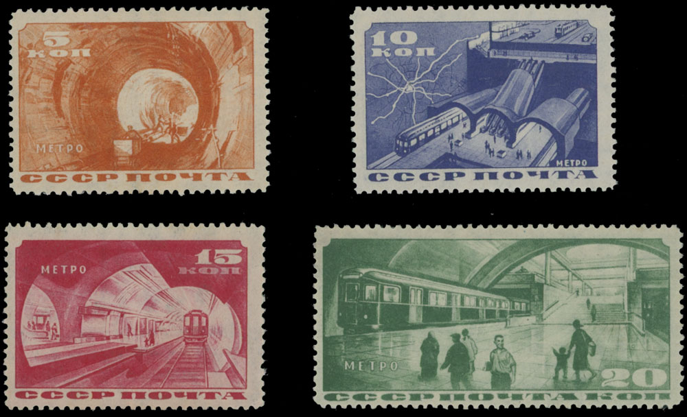 1935, Moscow Subway, 5k-20k, complete set of four, nice and post office fresh, full OG, NH, VF, C.v. $825, Est. $600-$750 , Scott #551-54
