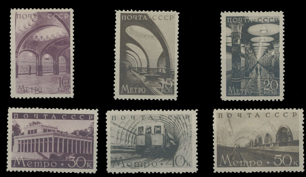 1938, Moscow Subway, 10k-50k, complete set of six, full OG, NH, VF, C.v. $156, Est. $100-$120 , Scott #687-92