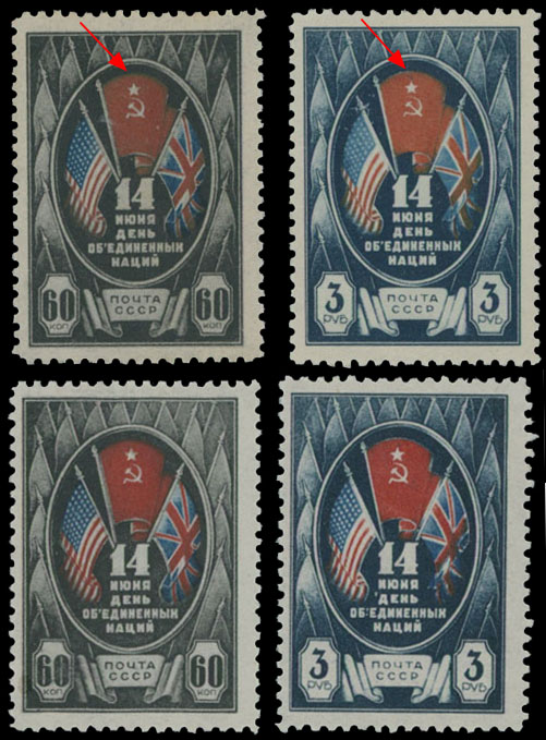 1944, Day of the United Nations, trial printings of 60k and 3r, complete set of two with extra gold color, full OG, NH, VF and rare in complete set, Est. $600-$750 , Scott #921-22