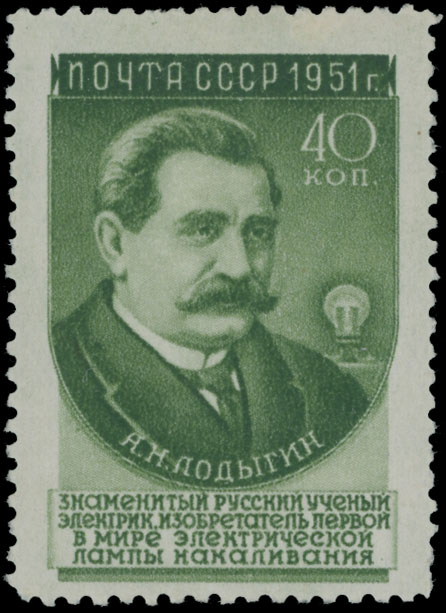 1951, Russian Scientists, Alexander Lodygin, Electrical engineer and inventor, 40k green raster horizontal diamonds (re-issue of 1956), full OG, previously hinged, VF and rare, Est. $1,000-$1,200 , Scott #1576 var