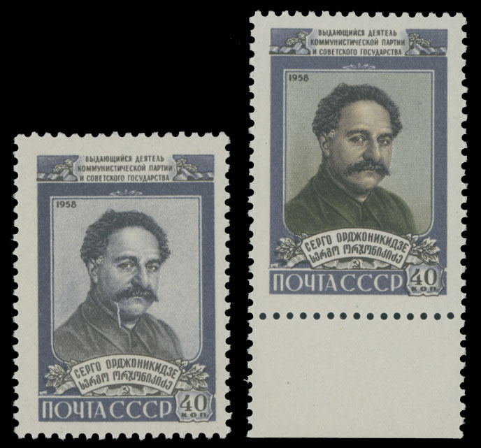 1958, Georgi (Sergo) Ordzhonikidze, 40k multicolored, omitted yellow, brown and green colors, full OG, NH, VF and scarce, guaranteed genuine, a common stamp is included, Est. $150-$200 , Scott #2145 var