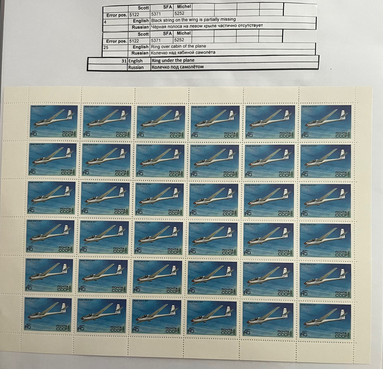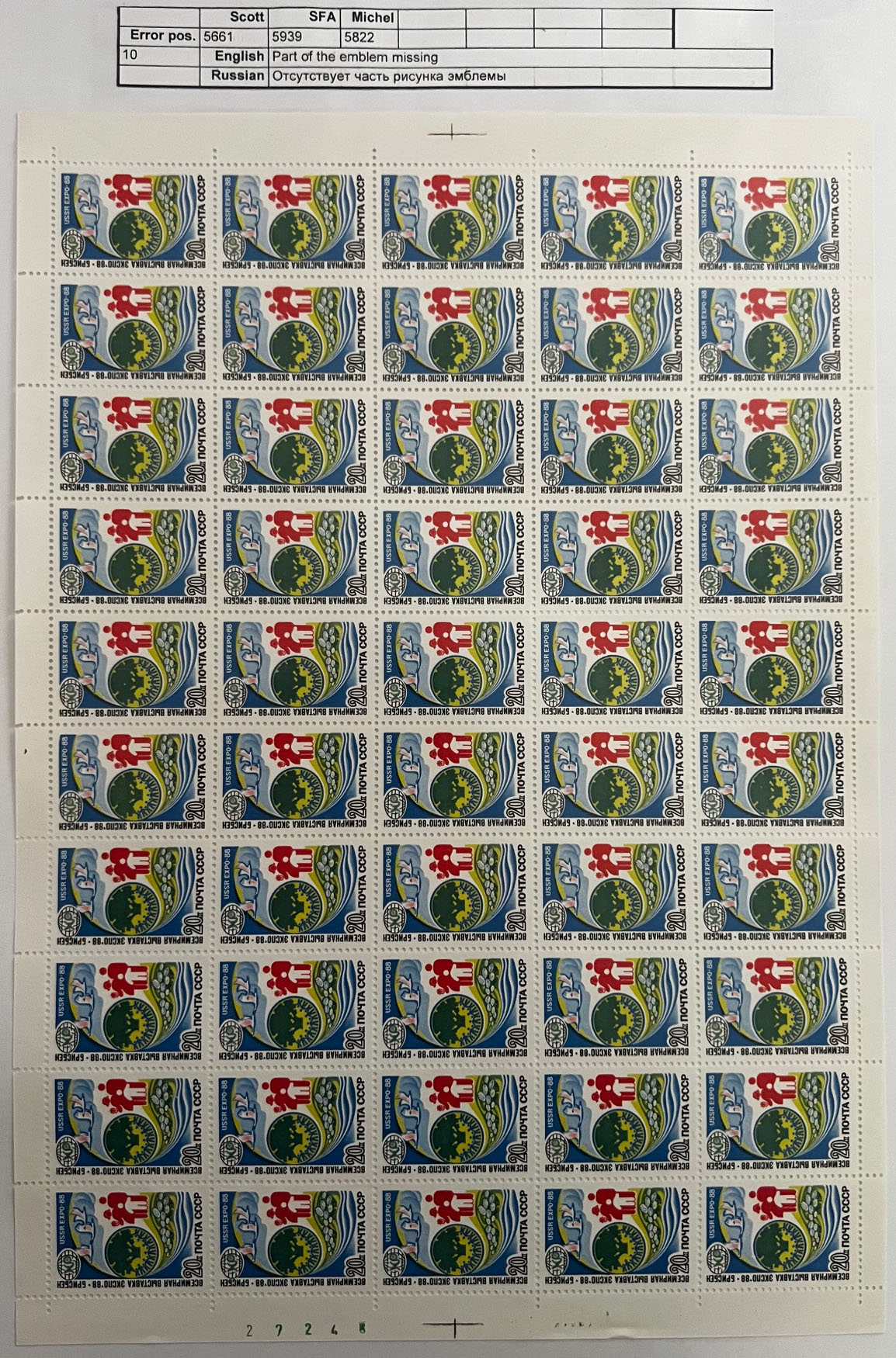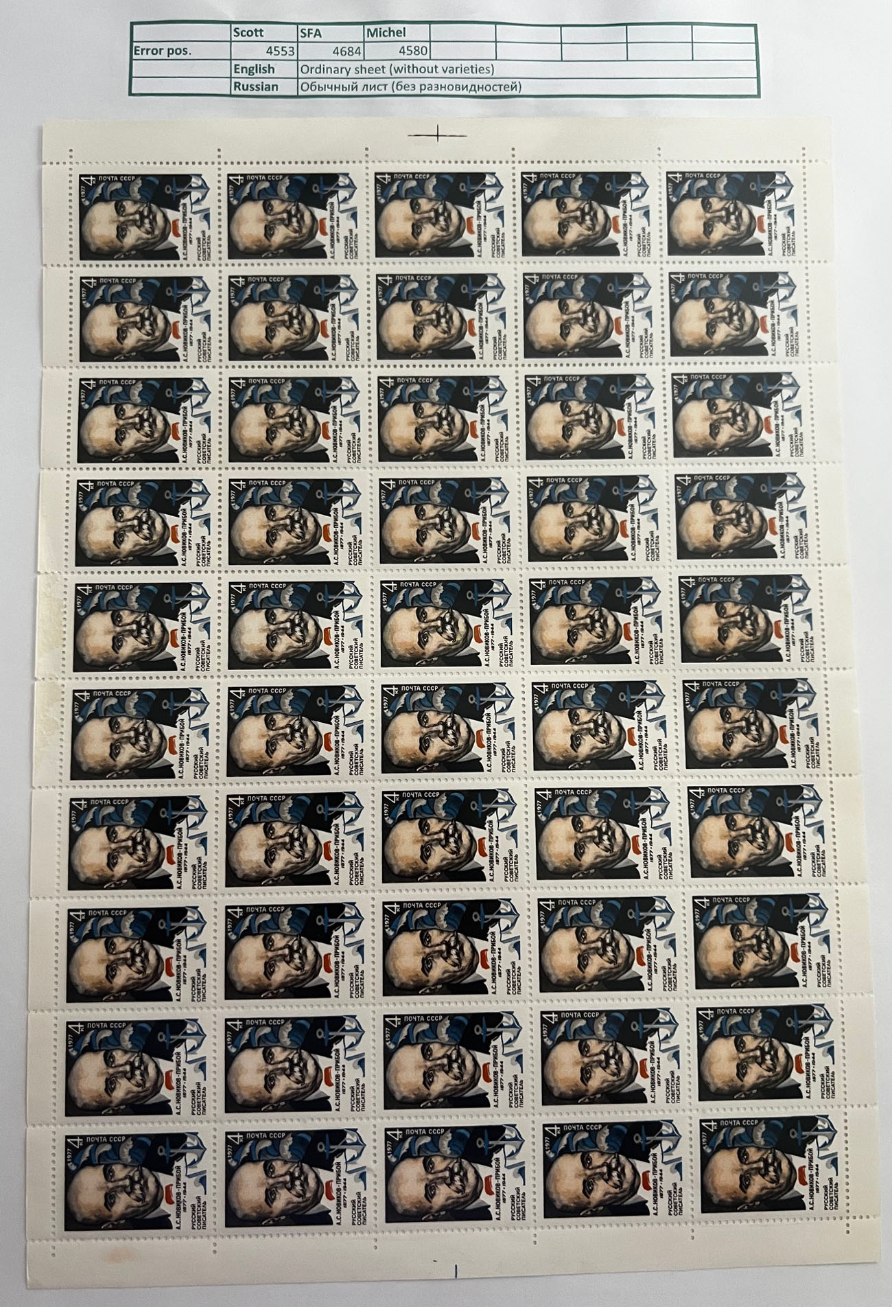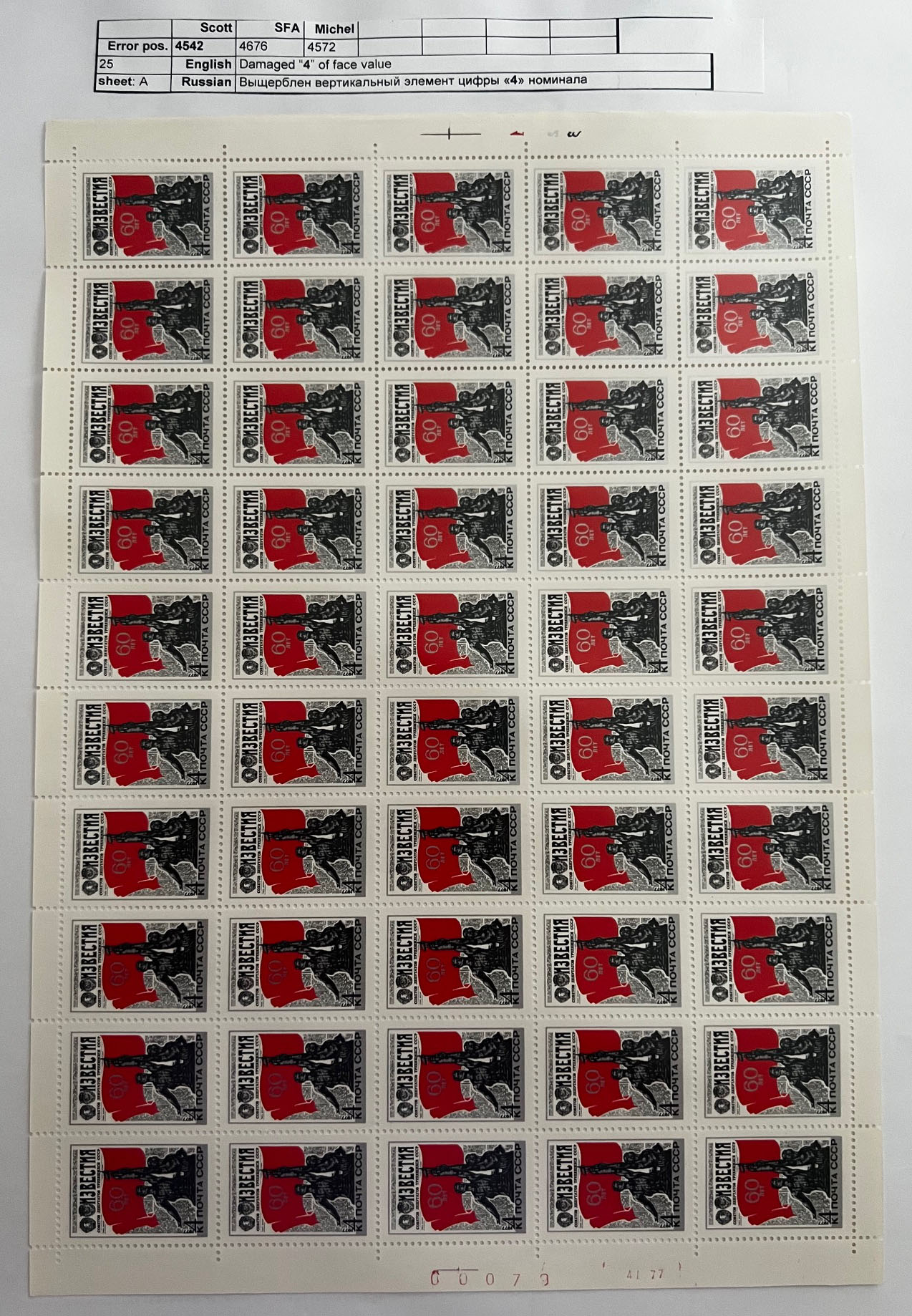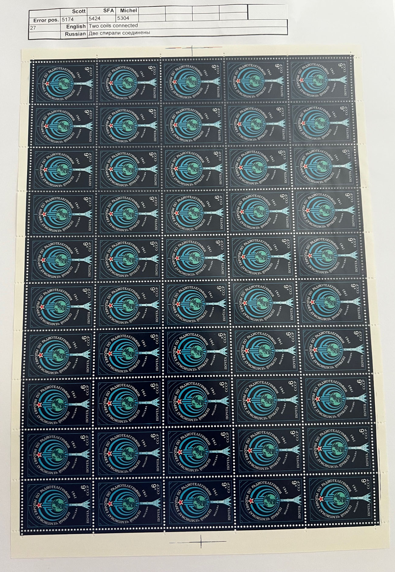 PLATE VARIETIES COLLECTION IN COMPLETE SHEETS: 1961-91, 372 mint sheets, representing 144 from 1961-70, 105 from 1971-80 and 123 from 1981-91, each sheet contains at least one plate error, some three or even more; the unit starting with definitive sheets of 1961, great range of various topical issues from the period, post office fresh quality group, full OG, NH, VF, the collection housed in 5 large and heavy folders with the total weight of about 20 pounds, appropriate postal charge will be applied, Est. $2,000-$2,500, Scott #2426/5800, var