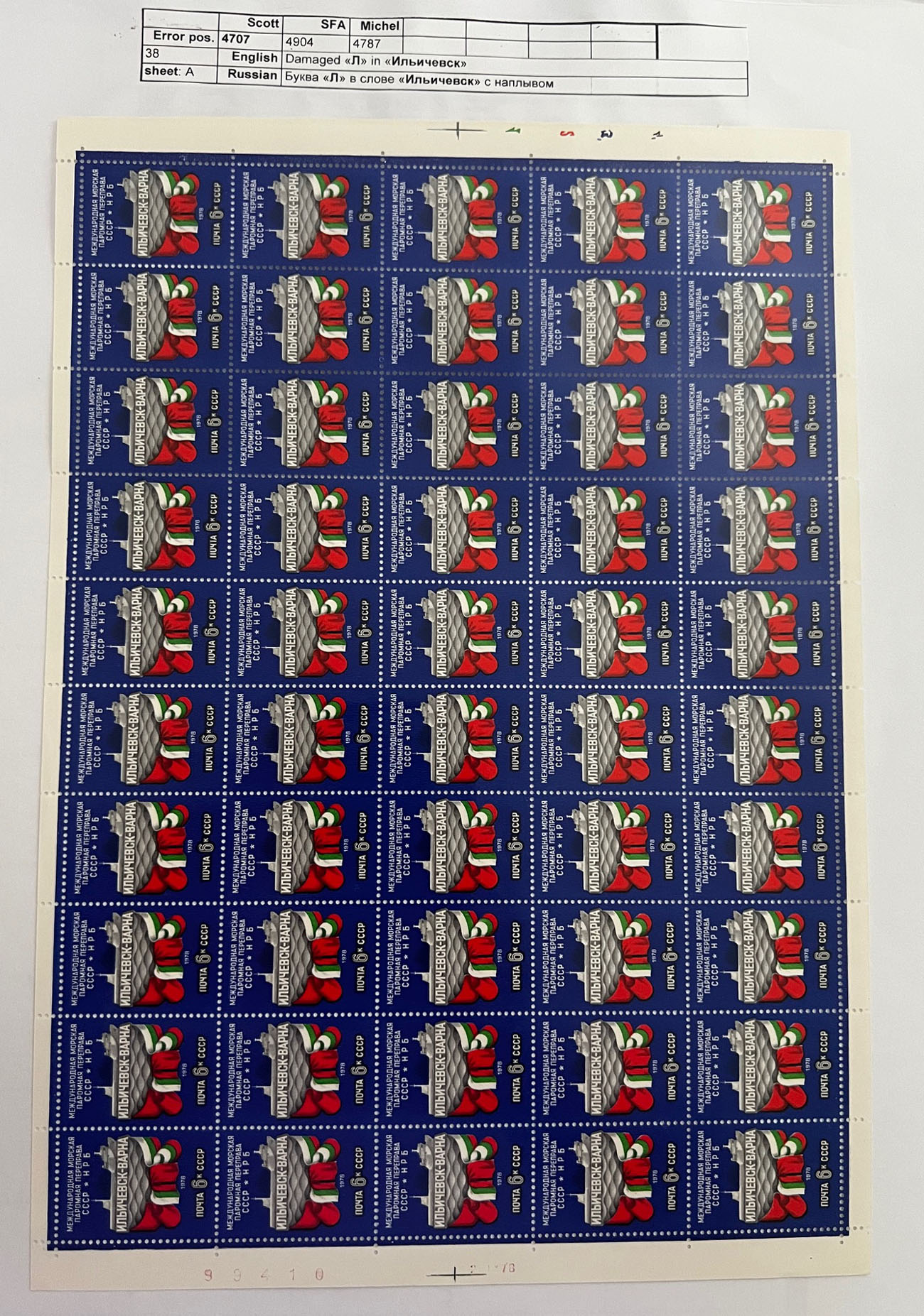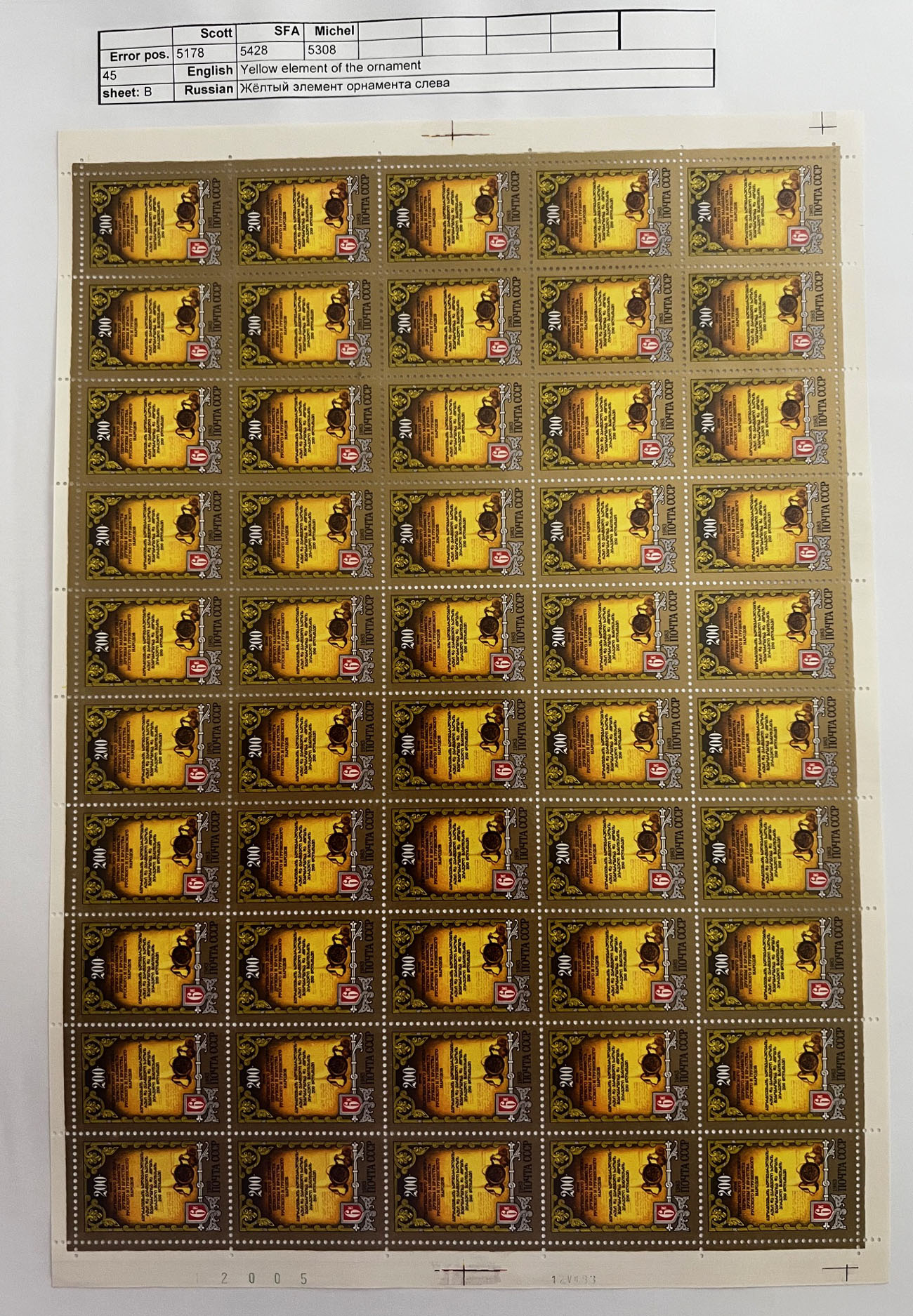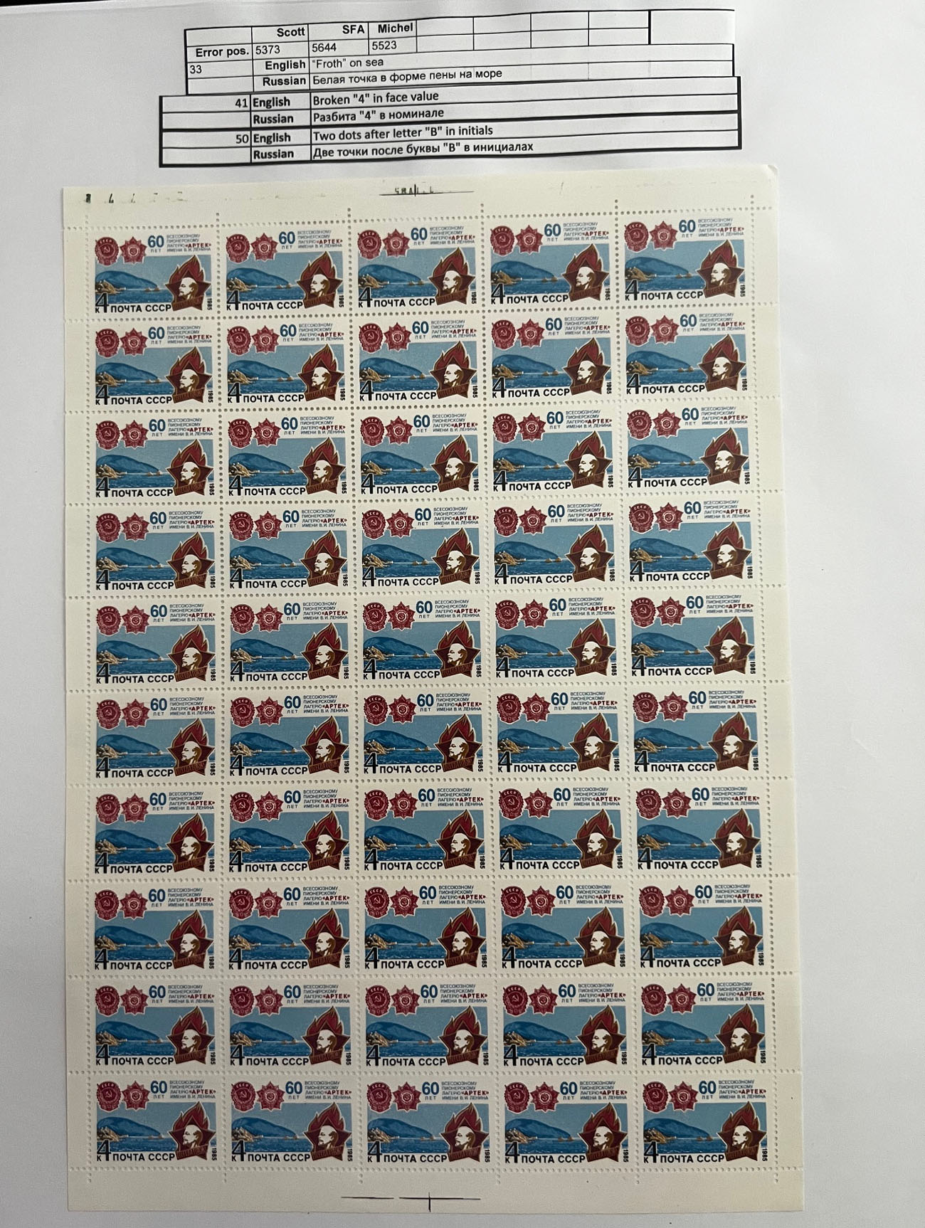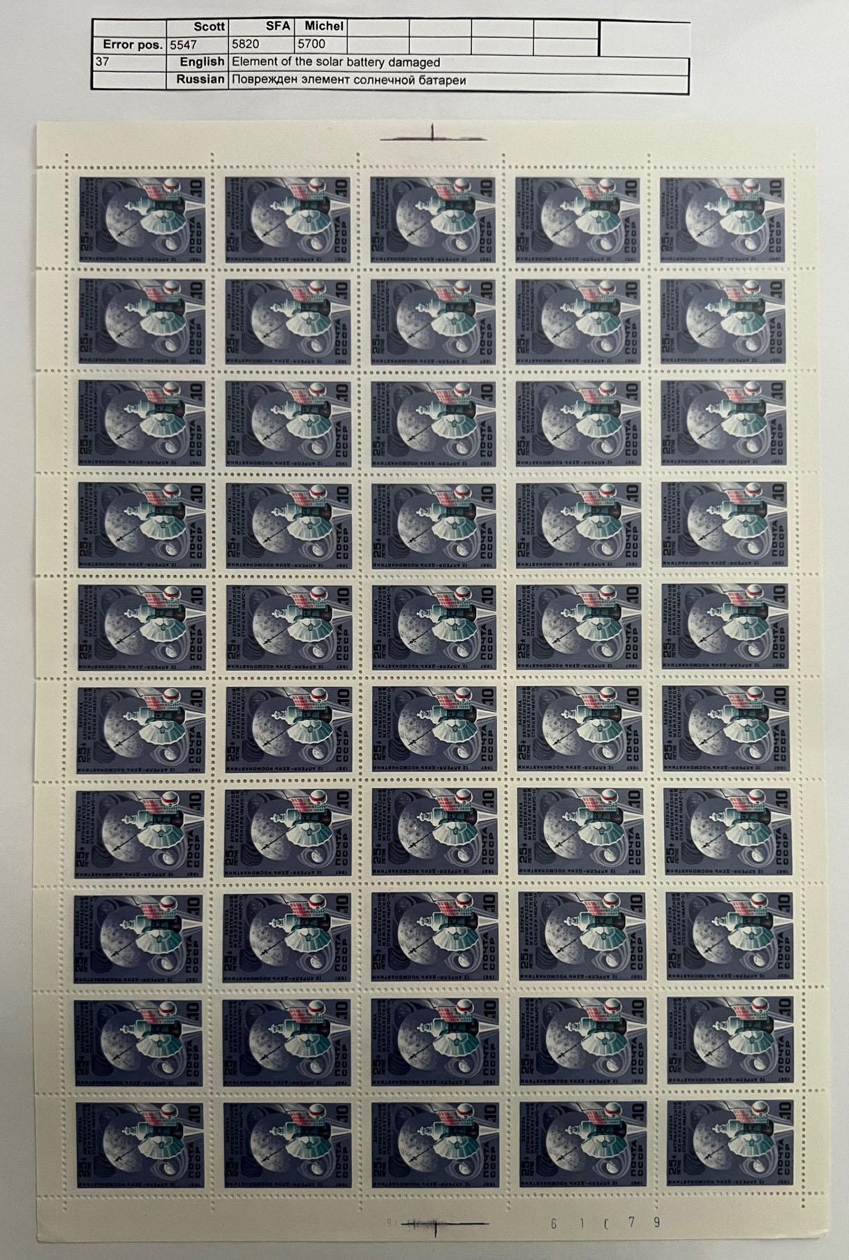 PLATE VARIETIES COLLECTION IN COMPLETE SHEETS: 1961-91, 372 mint sheets, representing 144 from 1961-70, 105 from 1971-80 and 123 from 1981-91, each sheet contains at least one plate error, some three or even more; the unit starting with definitive sheets of 1961, great range of various topical issues from the period, post office fresh quality group, full OG, NH, VF, the collection housed in 5 large and heavy folders with the total weight of about 20 pounds, appropriate postal charge will be applied, Est. $2,000-$2,500, Scott #2426/5800, var