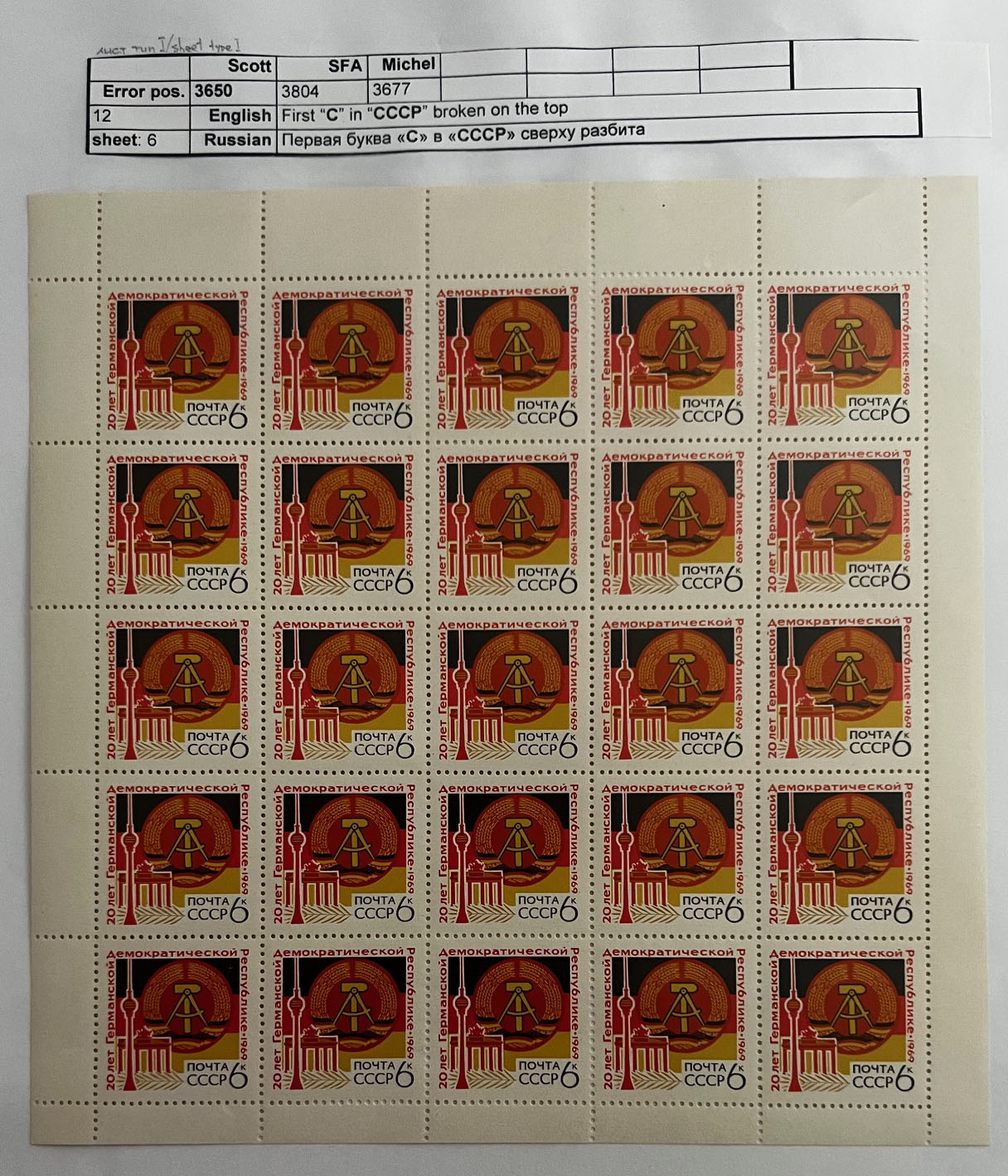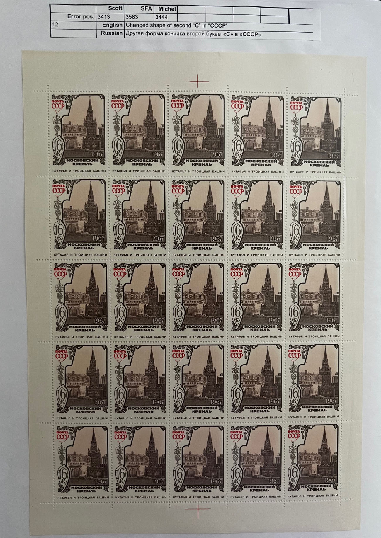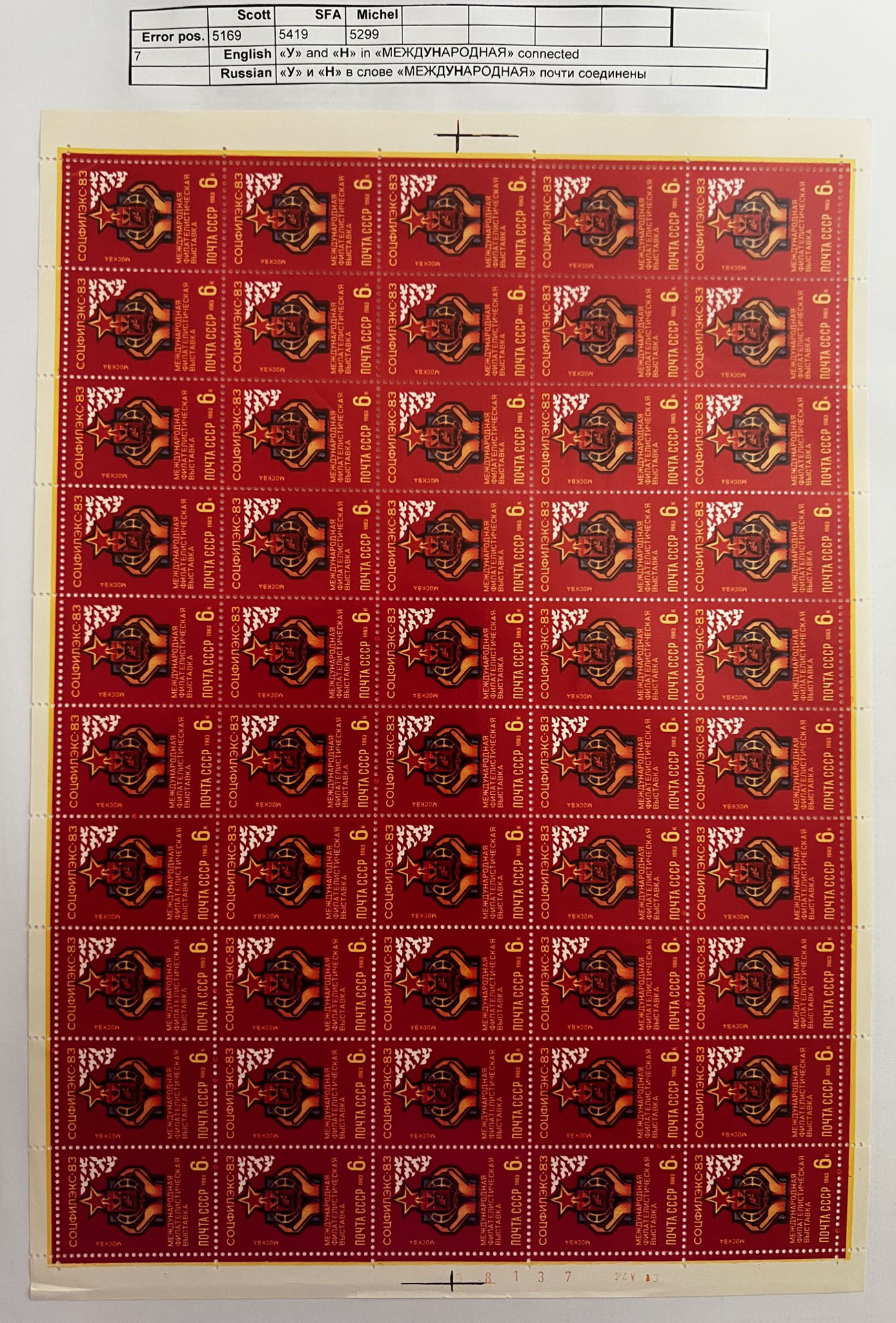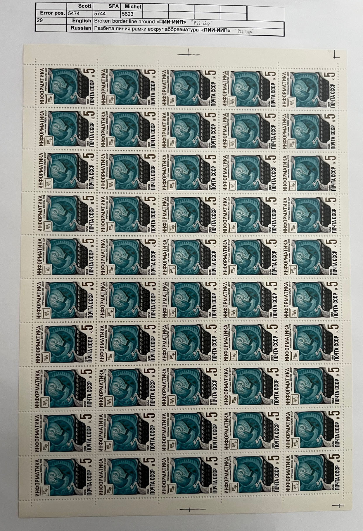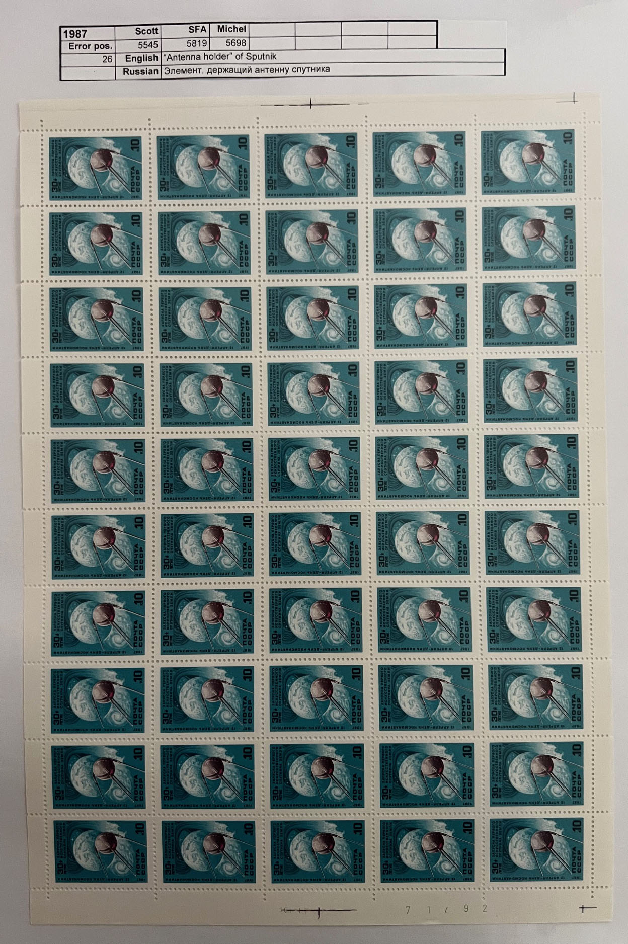 PLATE VARIETIES COLLECTION IN COMPLETE SHEETS: 1961-91, 372 mint sheets, representing 144 from 1961-70, 105 from 1971-80 and 123 from 1981-91, each sheet contains at least one plate error, some three or even more; the unit starting with definitive sheets of 1961, great range of various topical issues from the period, post office fresh quality group, full OG, NH, VF, the collection housed in 5 large and heavy folders with the total weight of about 20 pounds, appropriate postal charge will be applied, Est. $2,000-$2,500, Scott #2426/5800, var