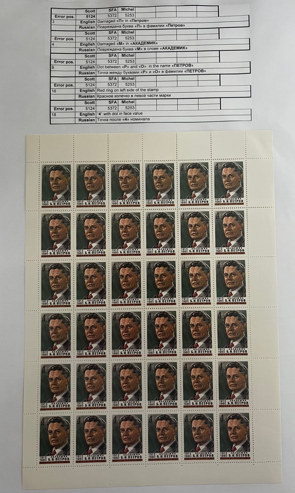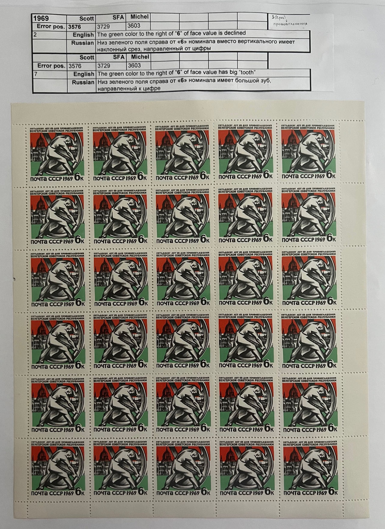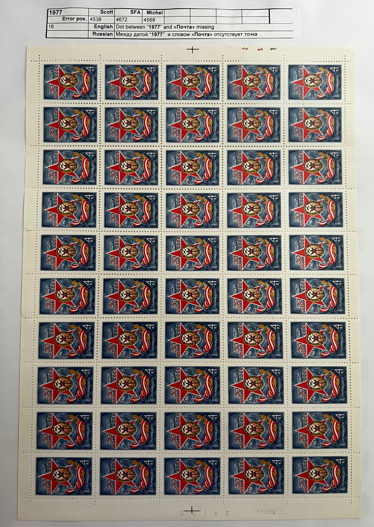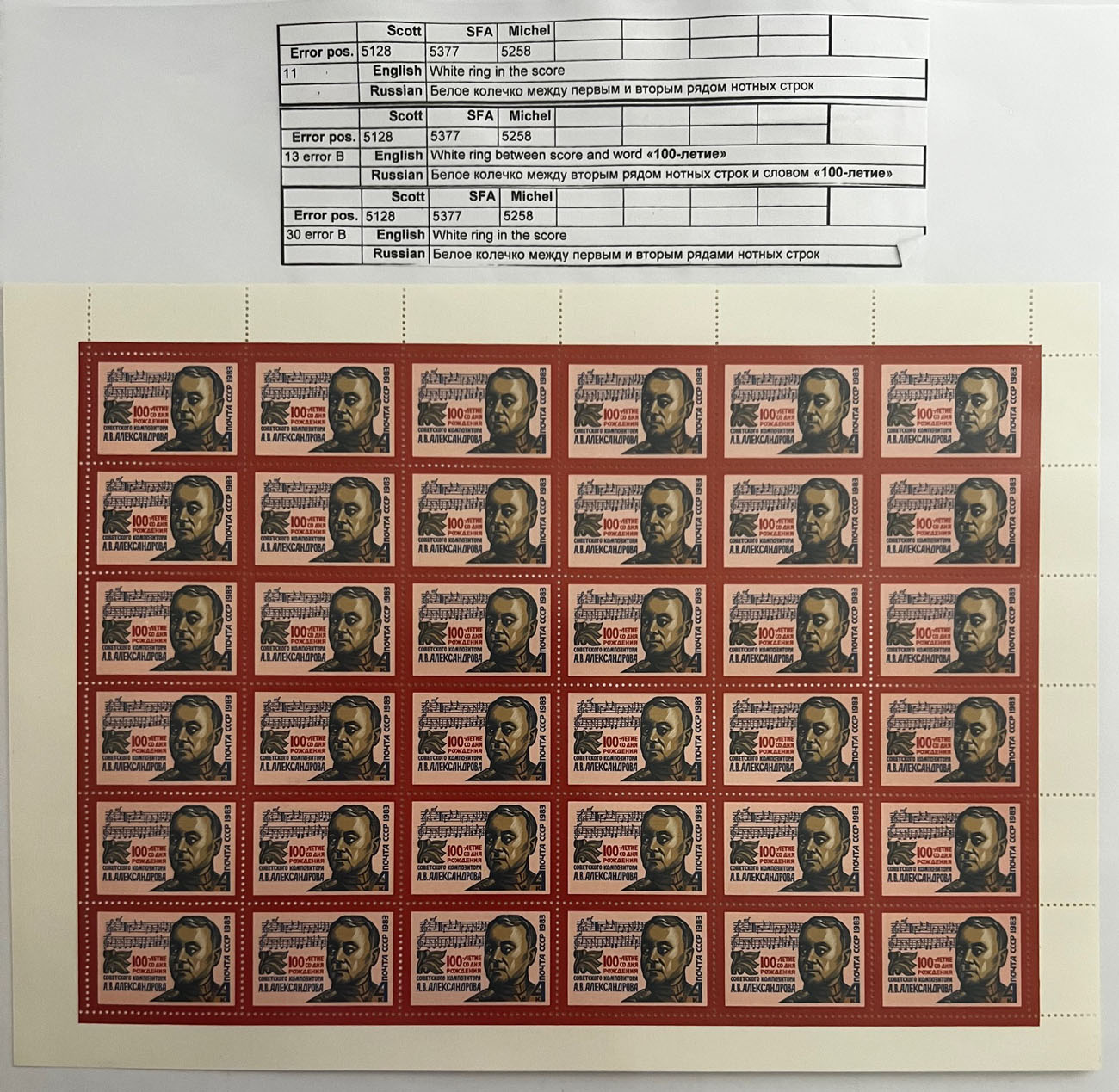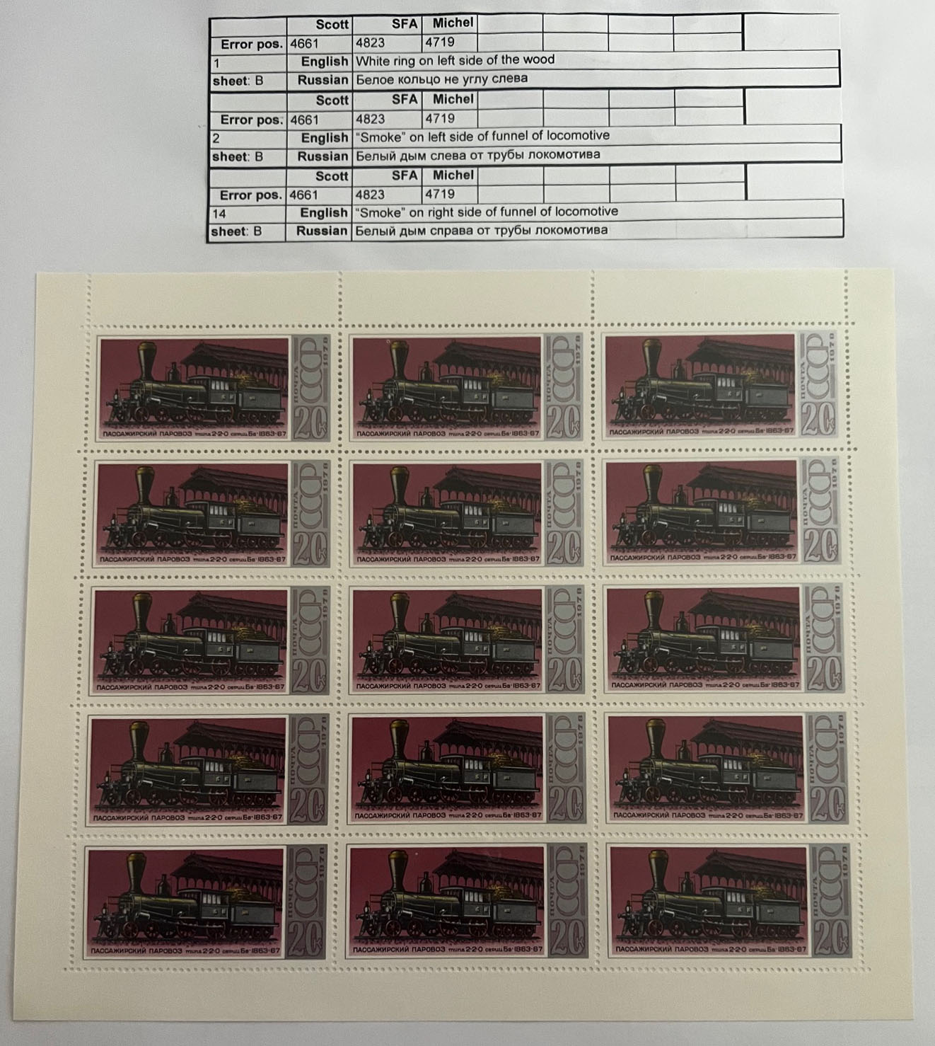 PLATE VARIETIES COLLECTION IN COMPLETE SHEETS: 1961-91, 372 mint sheets, representing 144 from 1961-70, 105 from 1971-80 and 123 from 1981-91, each sheet contains at least one plate error, some three or even more; the unit starting with definitive sheets of 1961, great range of various topical issues from the period, post office fresh quality group, full OG, NH, VF, the collection housed in 5 large and heavy folders with the total weight of about 20 pounds, appropriate postal charge will be applied, Est. $2,000-$2,500, Scott #2426/5800, var
