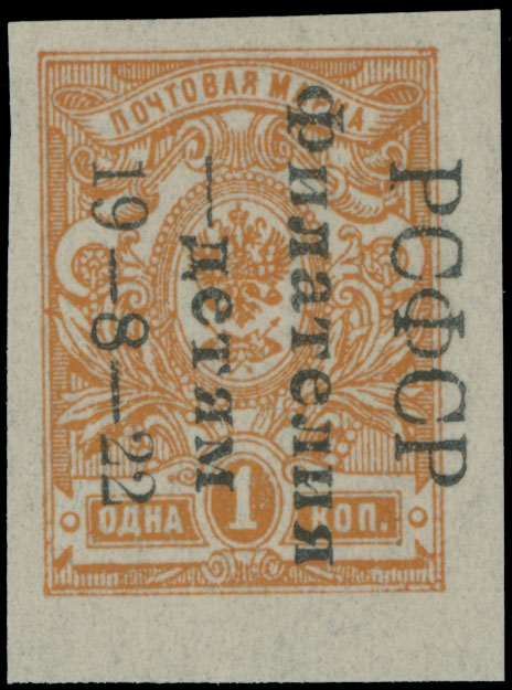 1922, Philately for the Children, black overprint on imperforate 1k orange, enlarged bottom edge with nice margins at other sides, overprint position 24 from the second printing, full OG, VLH, VF, C.v. $350, Est. $300-$350 , Scott #B29