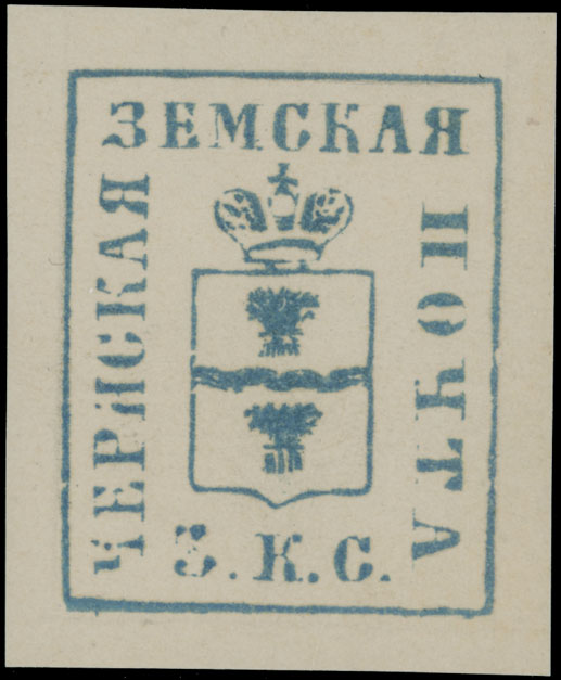 1869-71, handstamp 5k in gray blue on thick ribbed grayish paper, full OG, LH, VF and scarce, rank ”RR”, C.v. $1,000, Est. $800-$900 , Schmidt #13