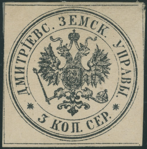 1871, Double-Headed Eagle in circle, 3k black on grayish paper, thin outer circle has break at right, full original yellow brown gum, VF, C.v. $400, Est. $200-$250 , Schmidt #1