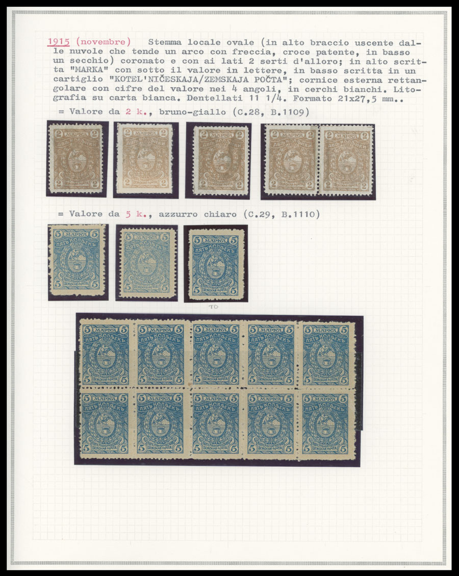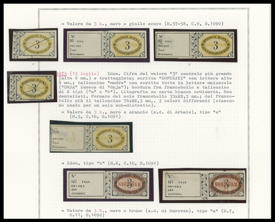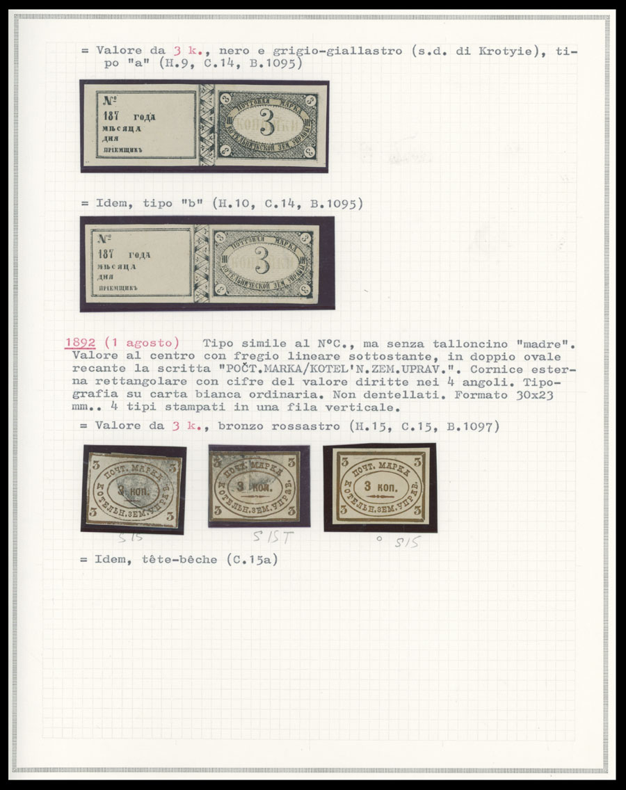 1871-1916, 73 mostly mint stamps (12 – used), starting with nice range of Oval inscribed in Rectangle design with counterfoils (coupons), including two of No.7, two of No.8, five of No. 9 (three unused – one defected, and two used), two No.10 and etc., nice group of later Arms perforated and imperforate stamps with shades, types and printing varieties, full/part of OG, F/VF, C.v. is well over $3,500, Est. $1,800-$2,200, Schmidt #7/30