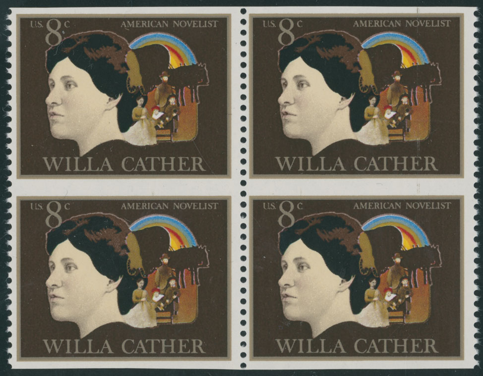 1973, American Arts issue, Willa Carter, 8c multicolored, block of four, imperforate horizontally, full OG, NH, VF, C.v. $350 as two pairs, Est. $150-$200 , Scott #1487a