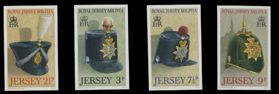 1972, Royal Artillery Shako, imperforate proofs in issued colors of 2½p-9p, complete set of four, full OG, NH, VF and scarce, Est. $250-$300 , Scott #69-72