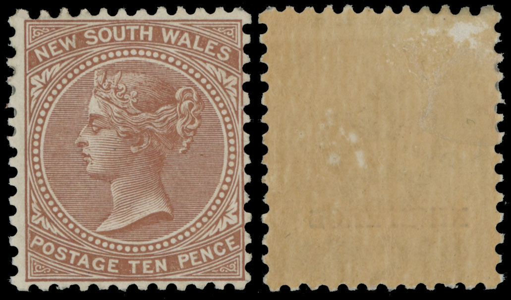 1899, Queen Victoria, albino surcharge ”NINE CENTS” on 10p dull brown, perforation 12×11½, watermark Large Crown and NSW, large part of OG, fine, SG #309b, C.v. £275, Est. $150-$180 , Scott #96b var