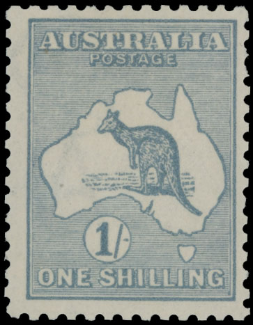1915, Kangaroo 1s blue green, watermark Wide Crown and Narrow A, die II, full OG, LH, VF, C.v. $160, SG #28, C.v. £225, Est. $150-$180 , Scott #42