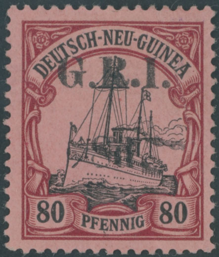 1914, surcharge (2nd setting) ”G.R.I. 8d.” on 80pf lake and black on pink paper, light crease, large part of OG, VF appearance, signed by H. Bloch, C.v. $475, SG #26, C.v. £475, Est. $200-$250 , Scott #26