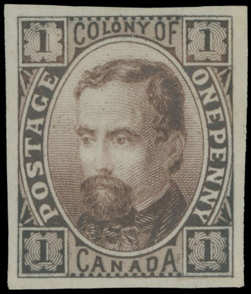 1851-59, Trial Essay by Bradbury, Wilkinson & Co., Charles Dickens 1p brown, printed on hard white bond paper, nice margins all around, no gum as produced, VF, Minuse and Pratte #E- Aa, NSSC #CPEx1, US$700, Est. $600-$700