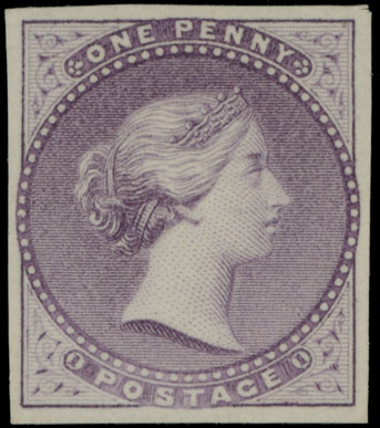 1851-59, Trial Essay by Bradbury, Wilkinson & Co., Queen Victoria 1p dark violet, printed on hard white bond paper, beautiful balanced margins, no gum as produced, VF, Minuse and Pratte #E-Bb, NSSC #CPEx2dp9, C.v. US $700; Est. $500-$600