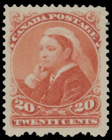 1893, Queen Victoria, Widow Weeds, 20c vermilion, nicely centered, nice and clean, full OG, LH, VF, C.v. $400, Unitrade C.v. CAD$600, Est. $200-$250 , Scott #46