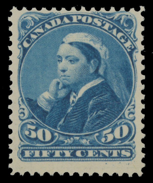 1893, Queen Victoria, Widow Weeds, 50c deep blue, strong proof like color and intact perforation, full OG, NH, fine+ centering and scarce in premium quality, C.v. $1,750, Unitrade C.v. CAD$800, Est. $300-$400 , Scott #47