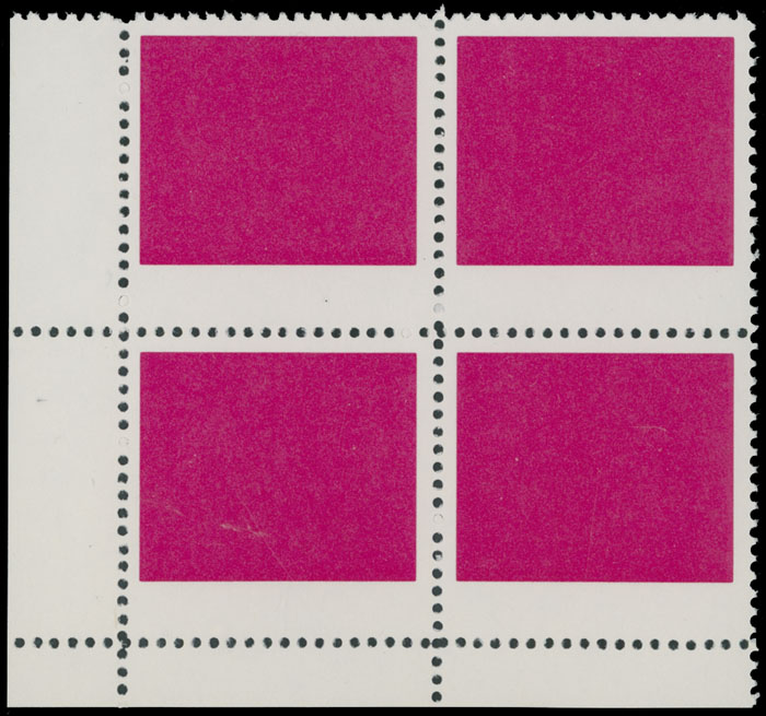 1971, Christmas, Snowflakes, (10c) carmine, silver color omitted, bottom left corner sheet margin block of four, full OG, NH, VF, this error is not listed in Scott or Unitrade, Est. $200-$250 , Scott #556 var
