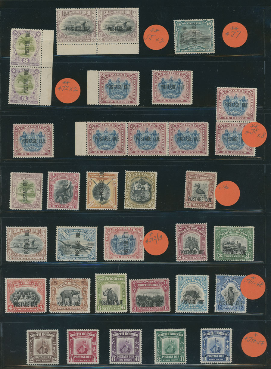 CLASSIC COLLECTION ON STOCKPAGES WITH EMPHASIS IN POSTAGE DUES: 1883-1939, 218 mostly mint stamps (a dozen – used), starting with early Arms, including the high values, imperforate set in blocks, following by surcharges, then early pictorials, large and small surcharges of 4c, complete and incomplete sets, nice range of dues (all identified) with many never hinged, full/part of OG, F/VF, SG C.v. is about £10,000 for cheapest perforation, Est. $1,500-$2,000, Scott #1/171, J2/54