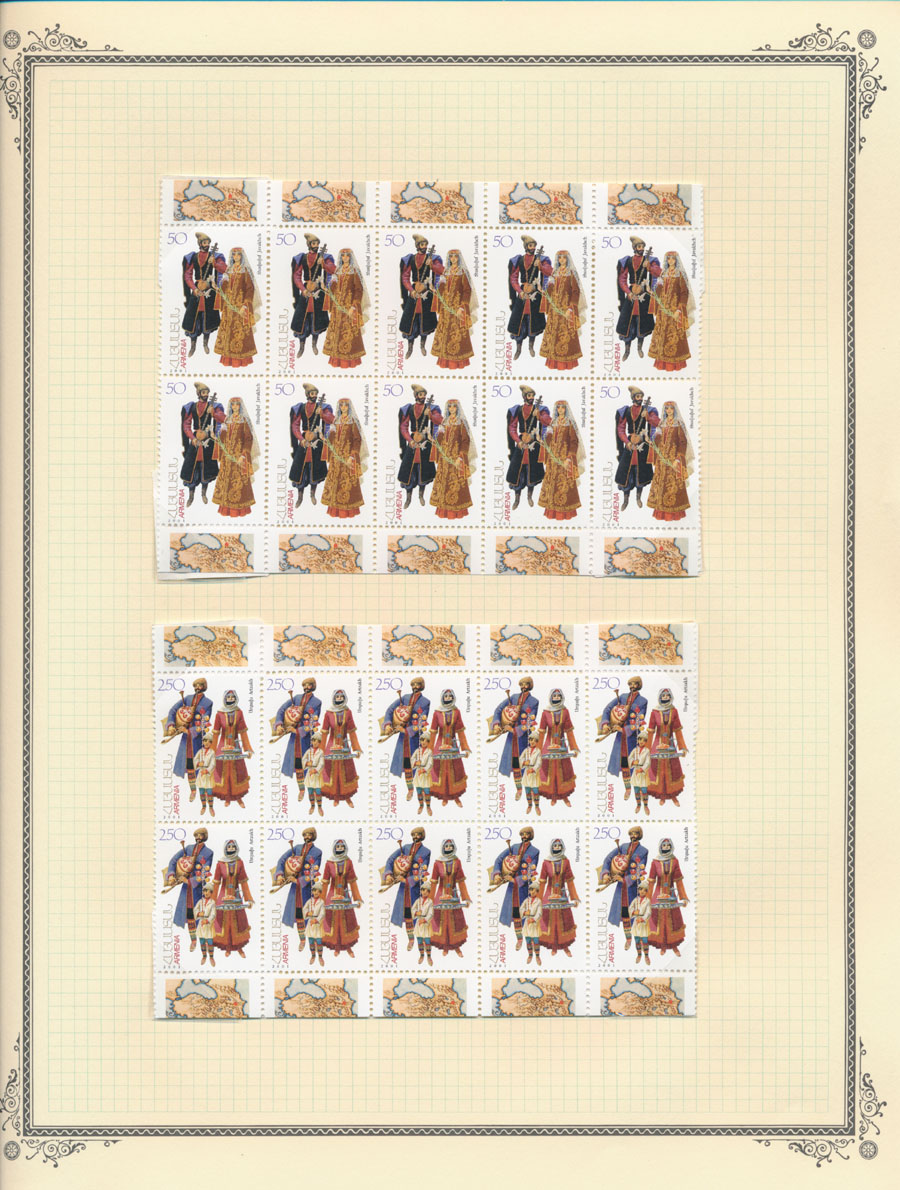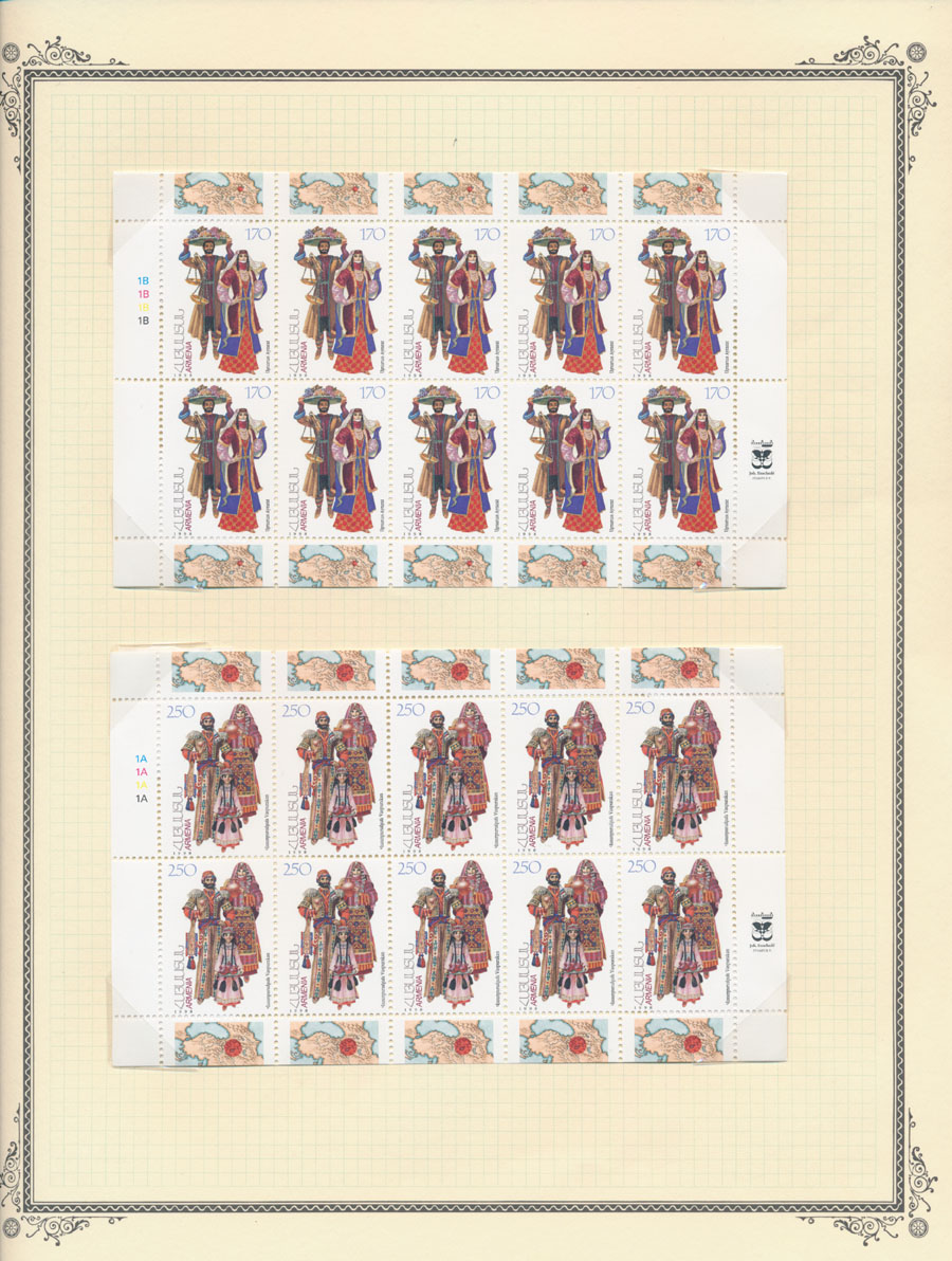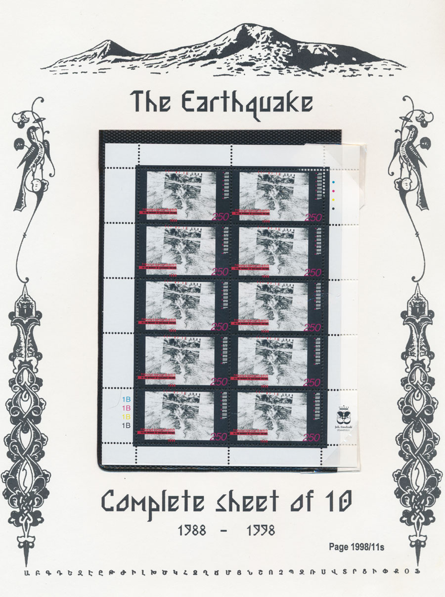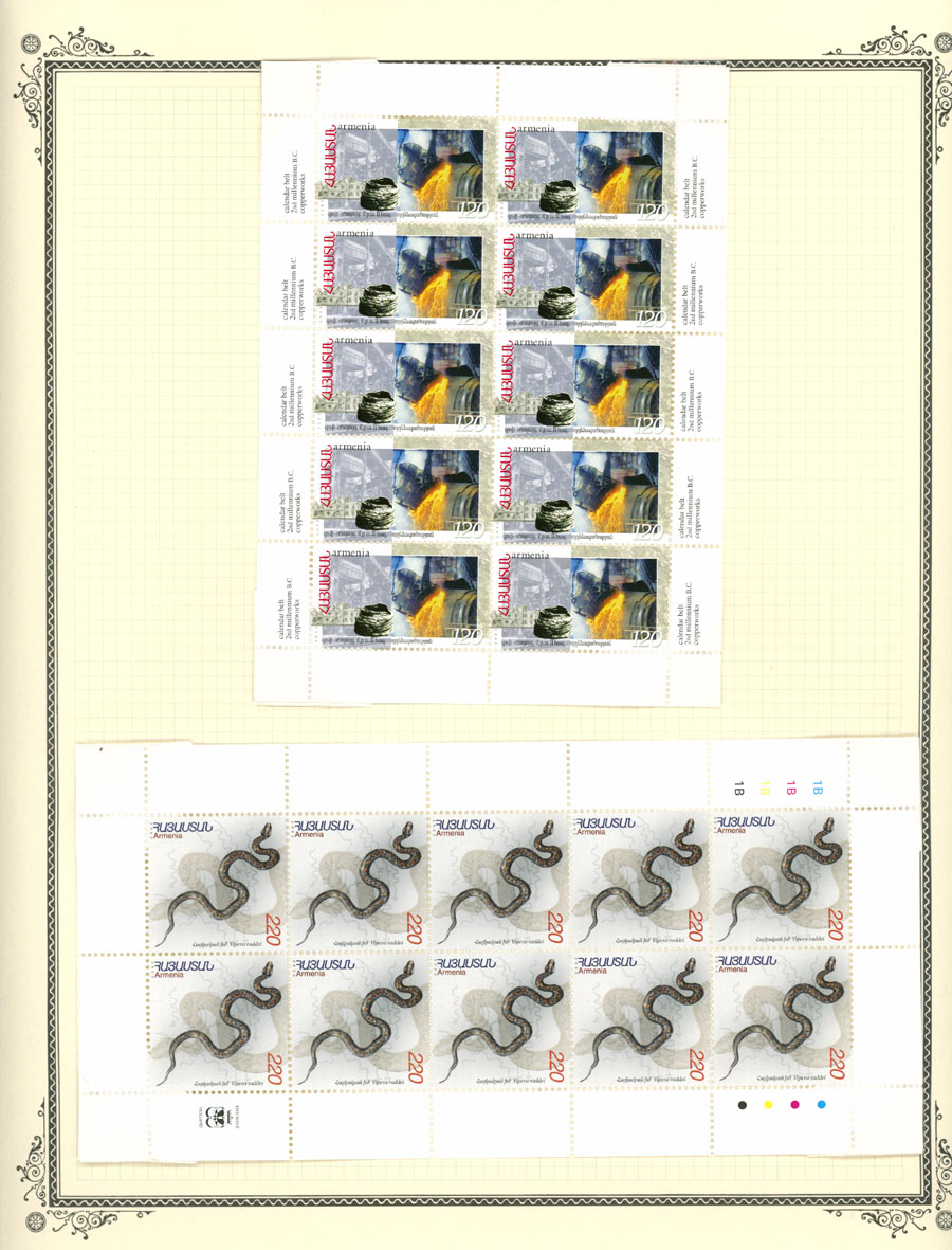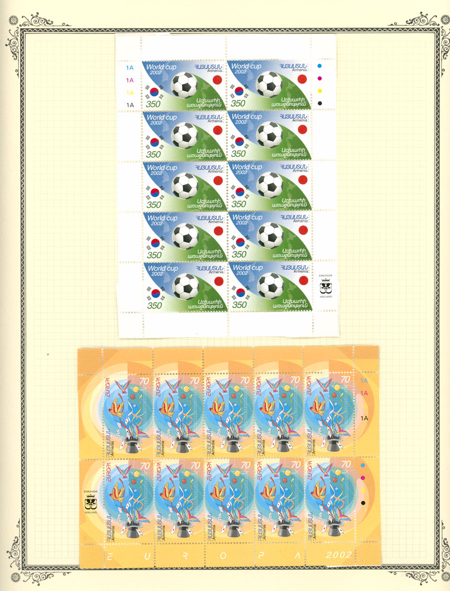 1992-2003, 384 mint stamps, 62 miniature and 35 souvenir sheets, arranged on Scott album and stockpages, practically complete, including imperforate Chess and Tigran Petrosian sets in pairs and blocks of four, numerous miniature sheets, official and unofficial stamps in commemoration of Spitak Earthquake, as well as Nagorno-Karabakh stamps, including some bogus issues, full OG, NH, VF, C.v. $2,250 for listed items, Est. $500-$600