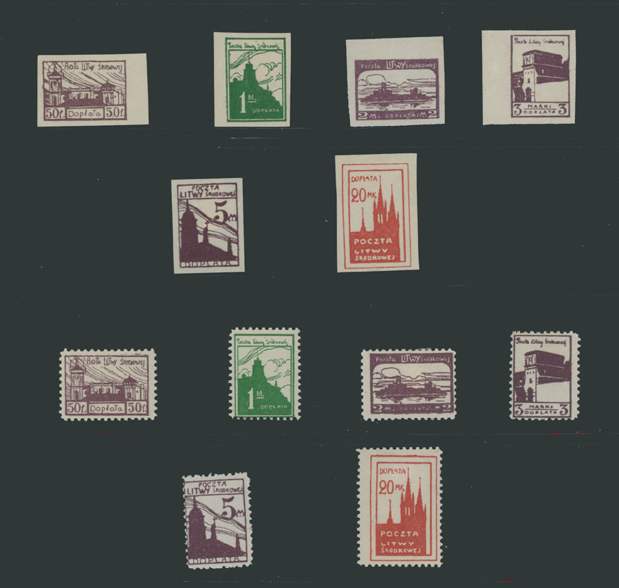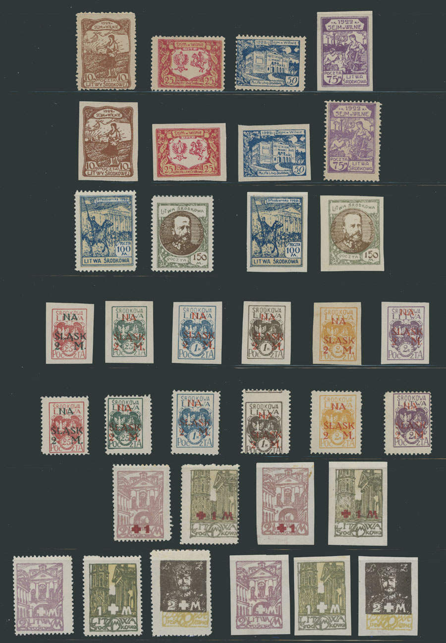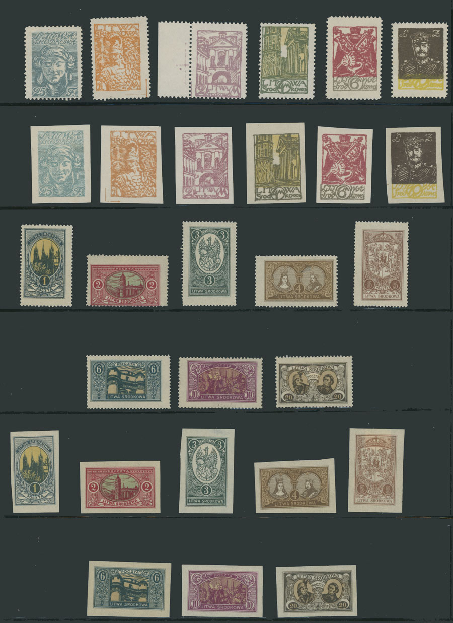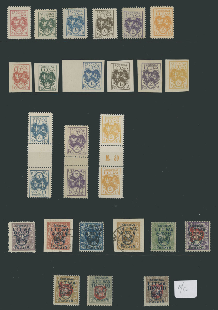 PRACTICALLY COMPLETE COLLECTION ON VARIO PAGES: 1920-21, over 100 mostly mint stamps (2 – cancelled on pieces), including No.13-20 (guaranteed genuine) and No.21, which is questionable and not counted, No.22 is missing, all other postage, semi-postal and postage due stamps are presented, fresh condition, full OG, NH or LH/hinged, some without gum as issued, C.v. is over $500, Est. $200- $250, Scott #1/58A, B1‑19A, J1-6, A