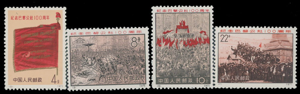 1971, Centenary of the Paris Commune, 4f-22f, complete set of four, no gum as issued, NH, VF, C.v. $399, Est. $150-$200, China Post No. N3 , Scott #1054-57