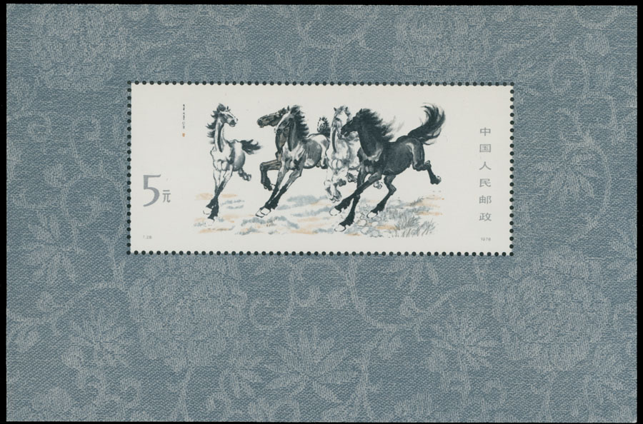 1978, Galloping Horses, $5 multicolored, souvenir sheet, perfect quality, full OG, NH, VF, C.v. $550, Est. $400- $450, China Post #T28MS , Scott #1399