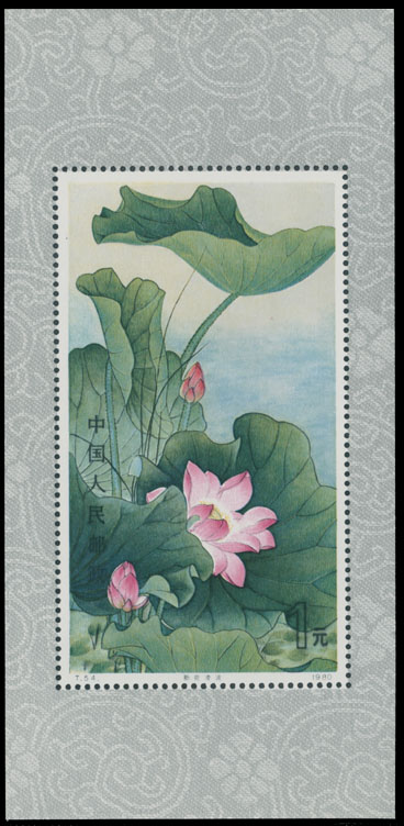 1980, Lotus, $1 multicolored, souvenir sheet, post office fresh condition, full OG, NH, VF, C.v. $300, Est. $200-$250, China Post #T54MS , Scott #1617