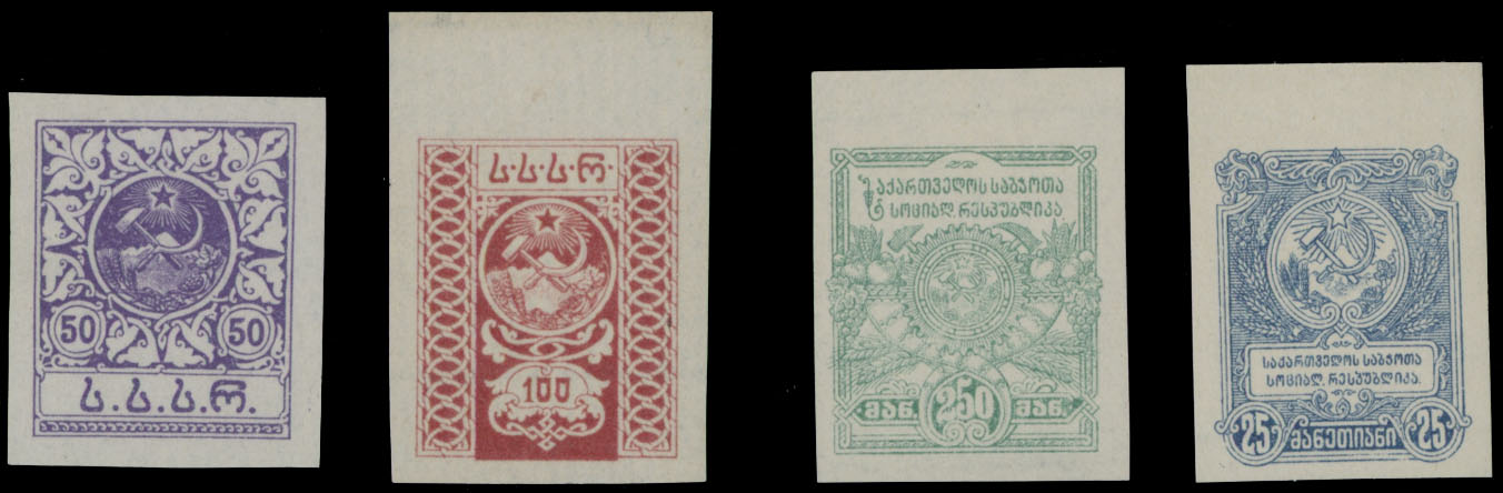 1922, 50r violet, 100r deep red, 250r green and 25r blue, complete set of four plate proofs (issued colors), printed on white wove paper (three on wove vertically laid paper), no gum as issued, NH, VF, Est. $250-$300, Scott #B1-4