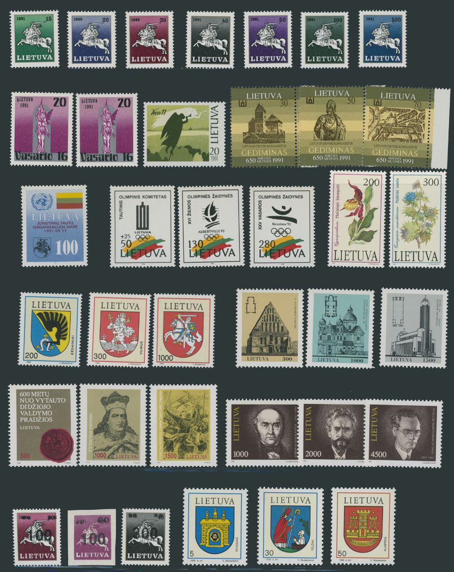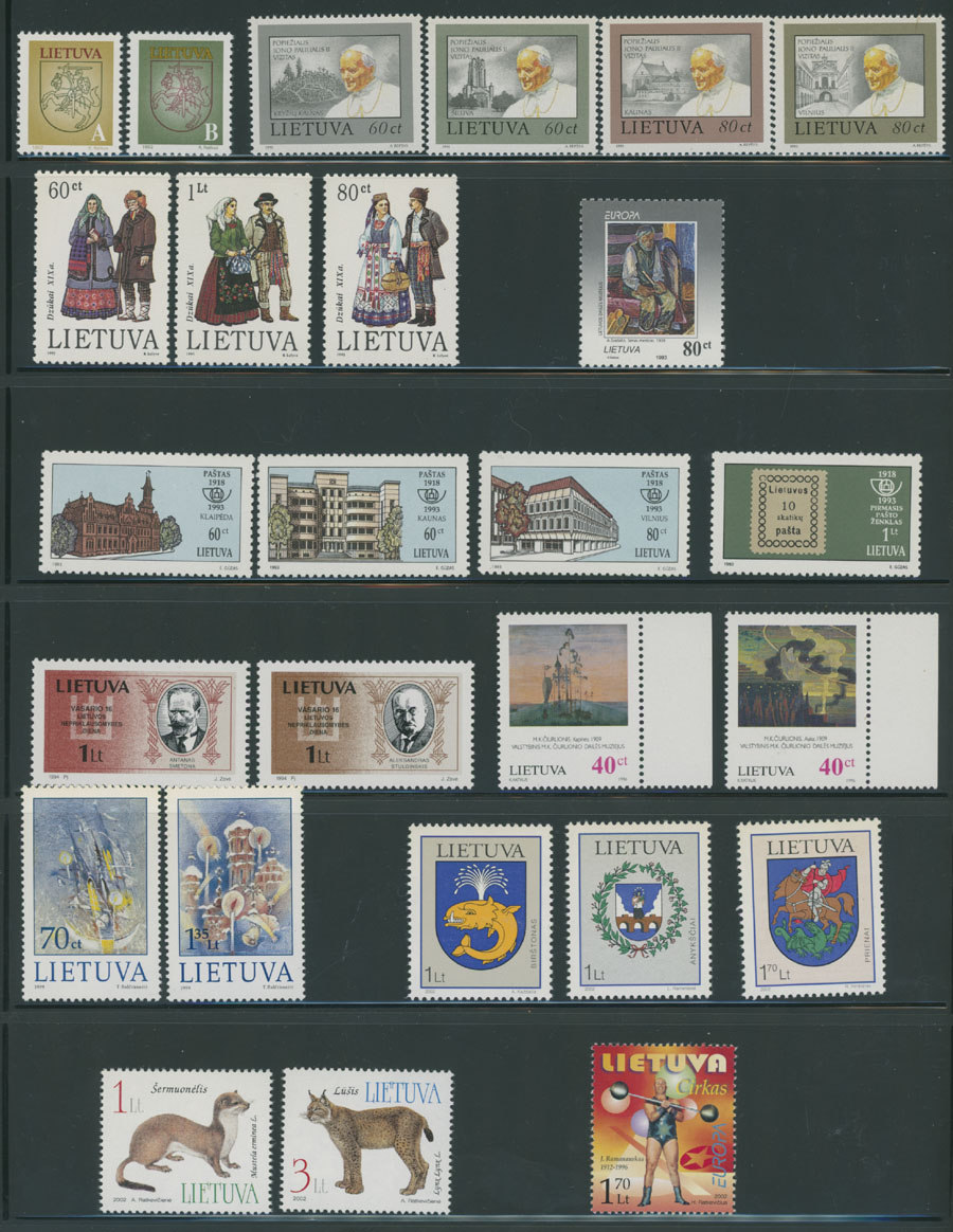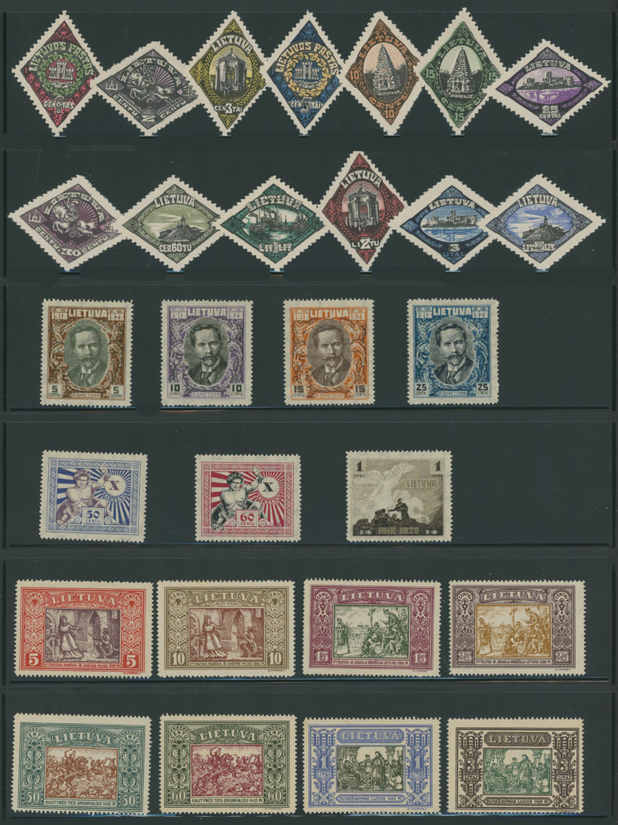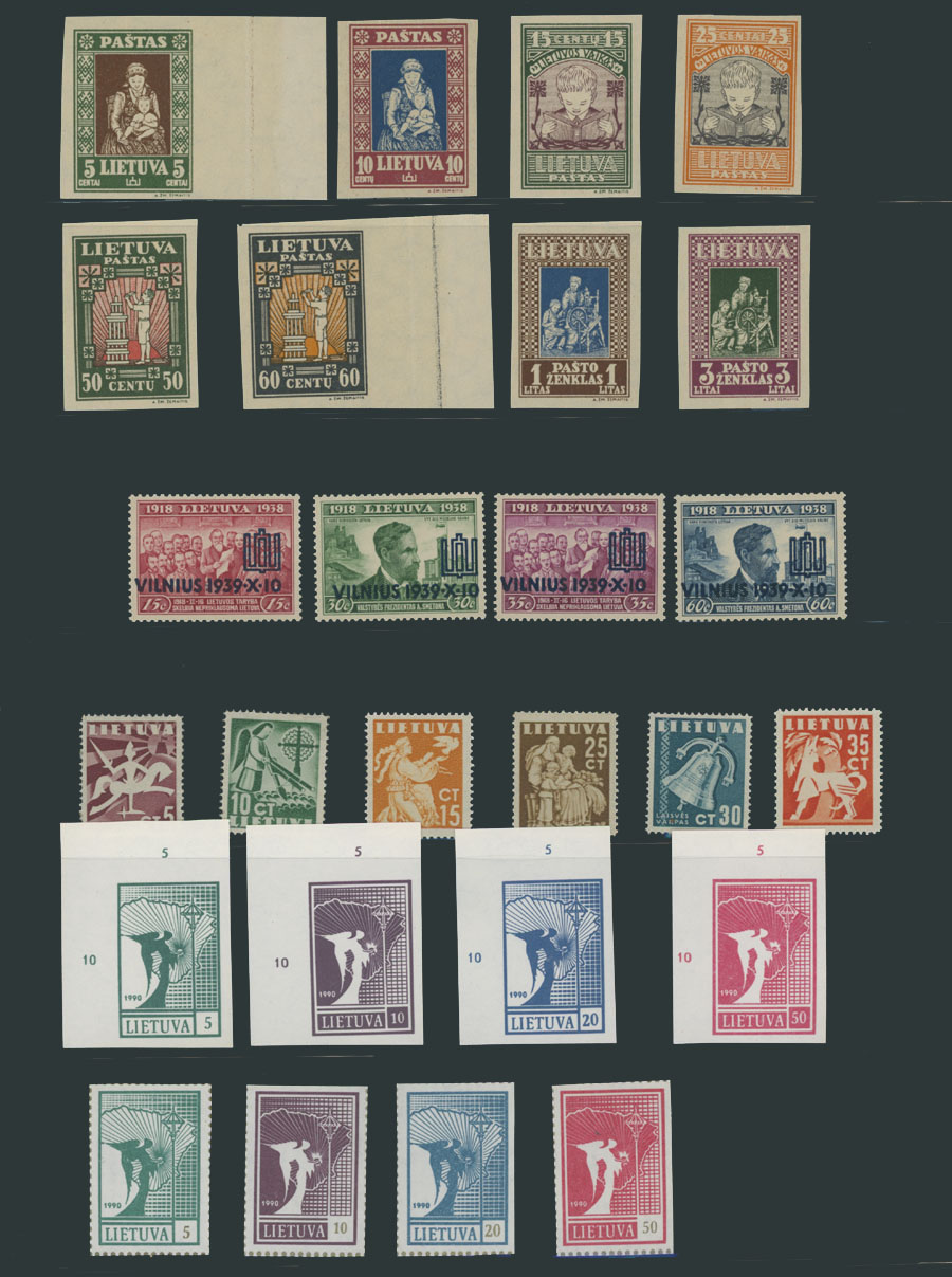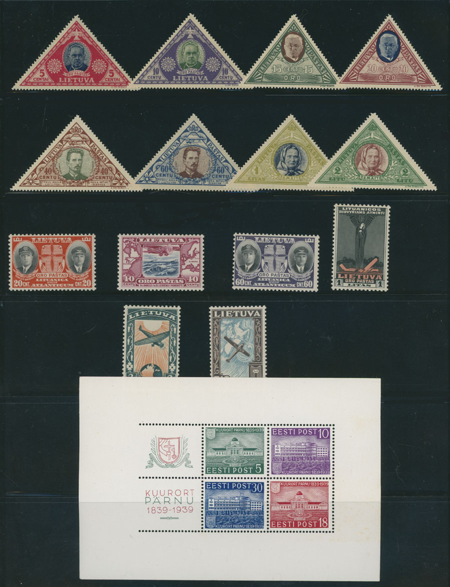 1923-2002, about 150 mint stamps, most value in issues of 1923 to 1940, starting with Memel incorporated to Lithuania, Independence anniversaries perf and imperf sets, Orphans Fund plus two air post sets, in addition Estonia – Narva souvenir sheet of 1939, all with full OG, NH and VF, C.v. is about $400, Est. $200-$250, Scott #176/722, C71-84