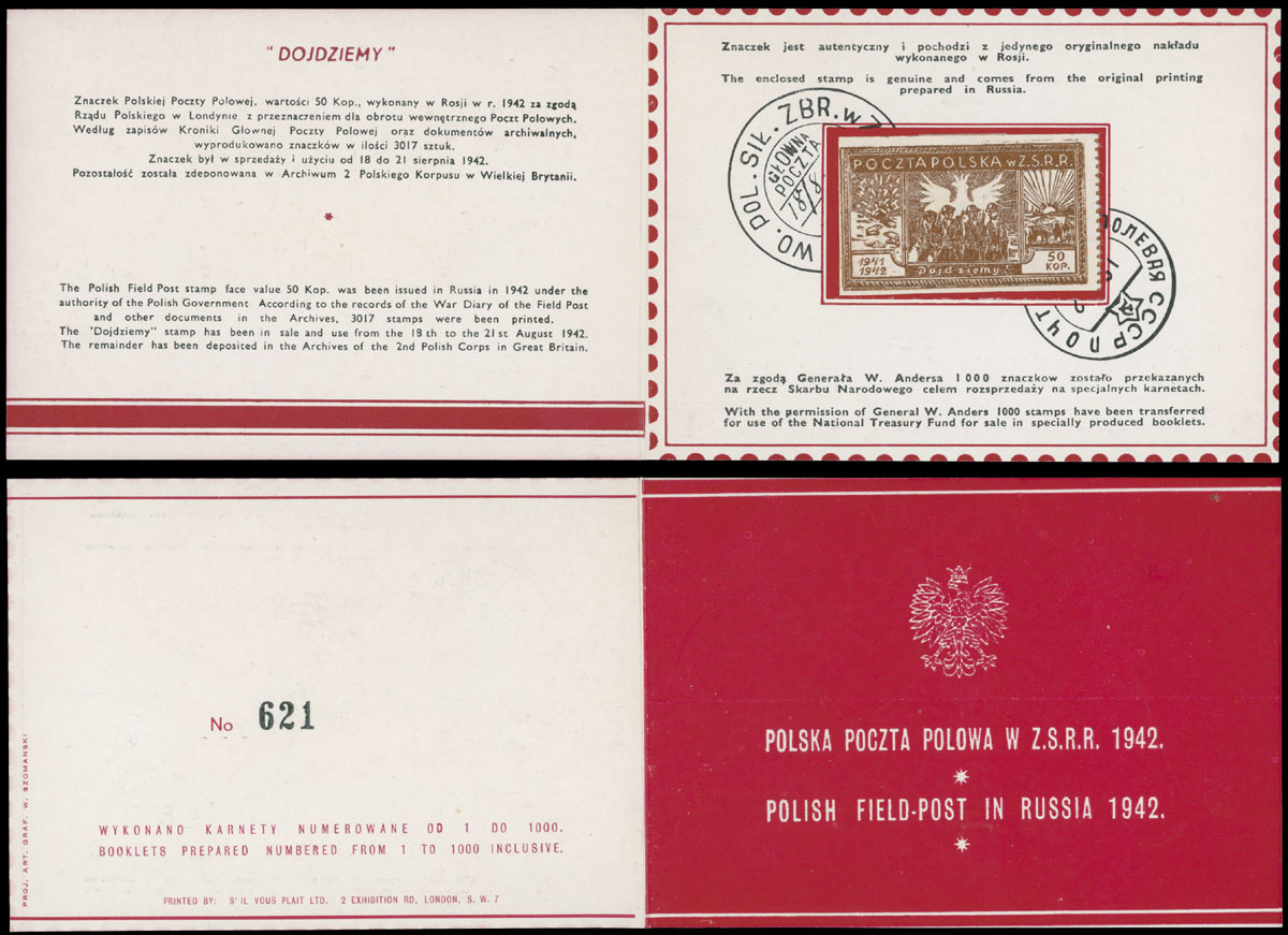 1942, Dojdziemy, 50k red brown, a single arranged in red booklet, numbered on reverse with No.621, fresh and VF, Fischer #1 footnote, C.v. PLN800, Est. $200-$250