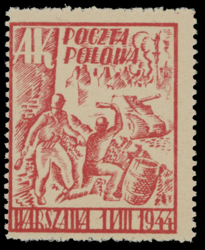 1944, Poczta AK Polowa, the second issue, no value indicated in red, type 5, no gum as issued, NH, fine, Fischer #118, C.v. PLN800, Est. $200-$250