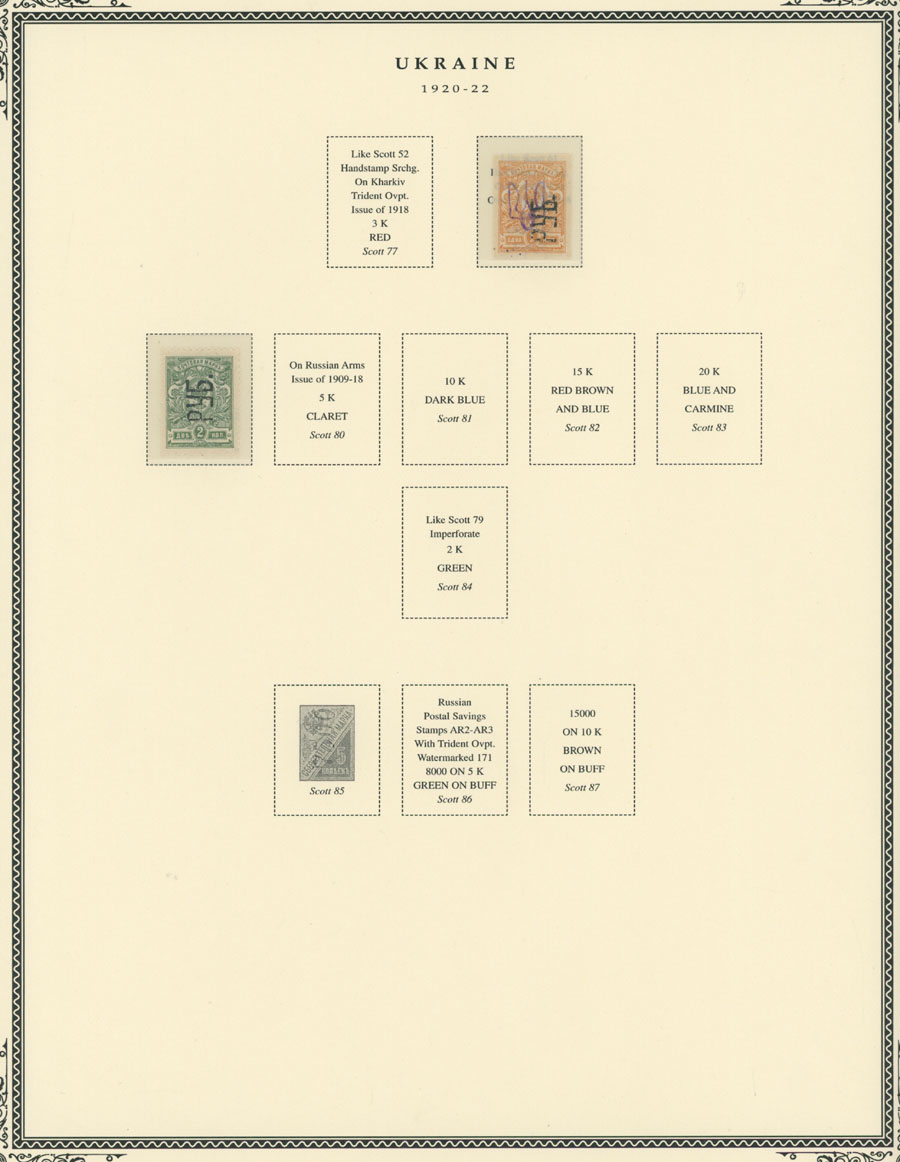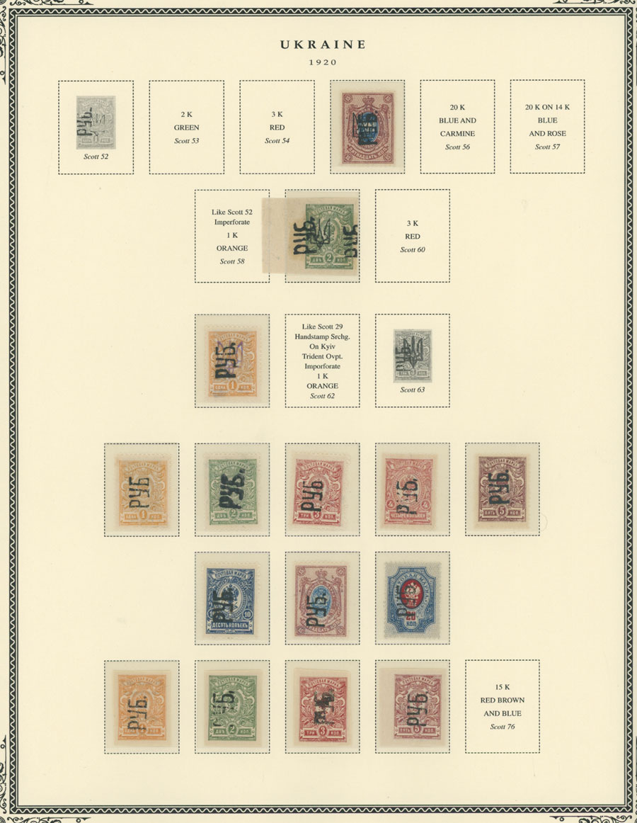 1920, 19 stamps with reading up overprint ”RUB” on perforated and imperforate Imperial stamps of 1k-20k with (4) or without Ukrainian Trident overprints, outstanding quality unit, full OG, NH (!), mostly VF, all valuable stamps are properly expertized, C.v. $925 as hinged, Est. $500-$600, Scott #55/79