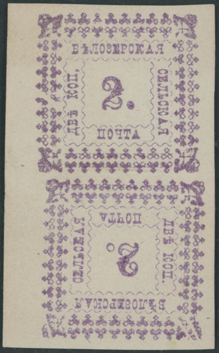 1887, 2k lilac, unclear impression, left sheet margin vertical tete-beche pair, types 1/4, full OG, previously hinged, VF, C.v. $600, Est. $500-$600 , Schmidt #32aS