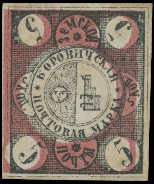 1868, 5k black and lilac rose, background is shifted to the left and lower right ”5” is incomplete, minor foxing, unused, no gum, F/VF, Est. $200-$250 , Schmidt #1M