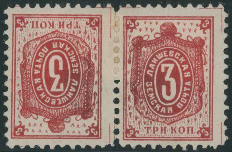 1904, Numeral in Oval, 3k carmine, horizontal tete-beche pair, left stamp with slight thin under hinge, part of OG, VF appearance, ex-Liphschutz, C.v. $500, Est. $200-$250 , Schmidt #9S