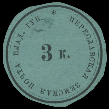 1877, Numeral in Circle, 3k black on bluish green paper, abbreviated ”Vlad.”, type 4, part of OG, thinned, still F/VF appearance of this rare stamp, rank ”RR”, C.v. $2,000, Est. $750-$800 , Schmidt #2T