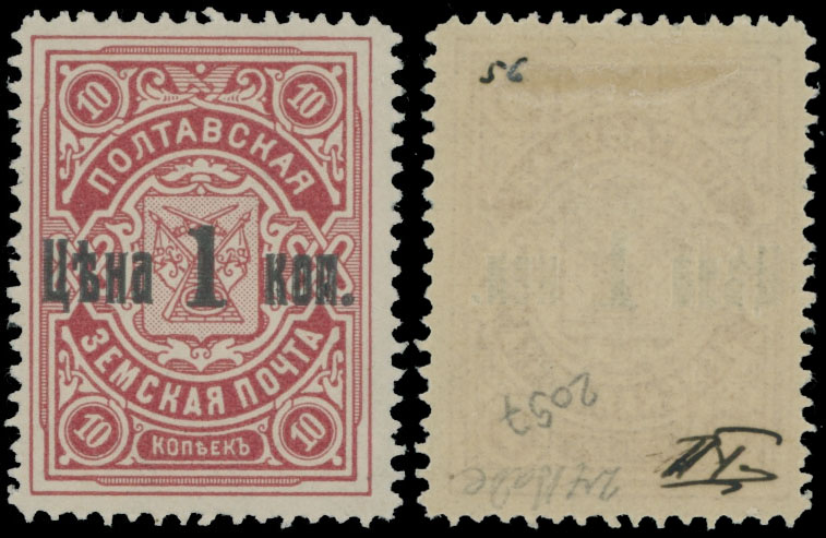 1911, black surcharge 1k on 10k carmine red, full OG, previously hinged, VF and rare, only 25 stamps (one pane) was produced, signed by Gan’ko, C.v. $2,000, Est. $1,200-$1,500 , Schmidt #29