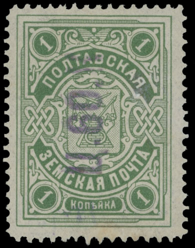1919, reading up vertical violet surcharge 60(k) on Arms stamp of 1k yellow green, large part of OG, VF, guaranteed hs on reverse, C.v. $500, Est. $400-$450 , Schmidt #45M2