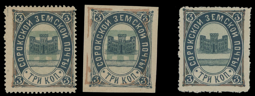 1898, Arms in Double Oval, 3k indigo, gray blue and brown red, perforated and imperforate singles with inverted light blue color, part (perf stamp) or full OG, VF and scarce, a common stamp is included, C.v. $2,000, Est. $1,000-$1,200 , Schmidt #10M, 10JM