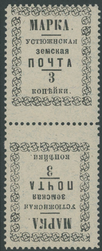 1897, Curls with Diametric Line inside, 3k black on gray granite paper, vertical tete-beche pair, both stamps of type 5, full OG, previously hinged, VF, C.v. $800, Est. $250-$300 , Schmidt #22S