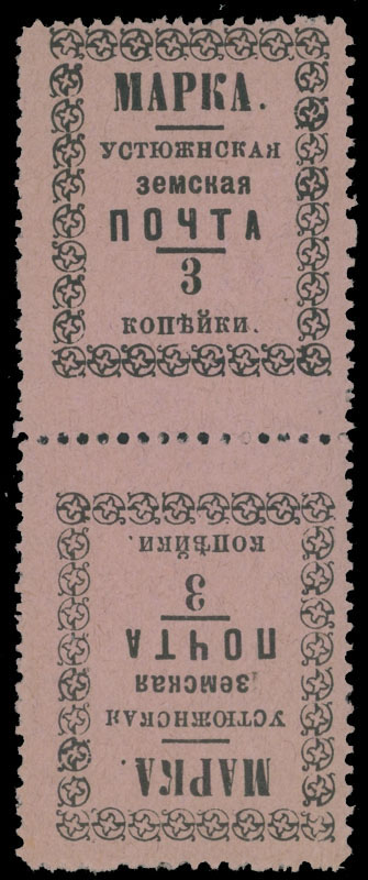 1897, Curls with Diametric Line inside, 3k black on lilac rose paper, vertical tete-beche pair (5/5), full OG, VF, C.v. $800, Est. $250-$300 , Schmidt #24S