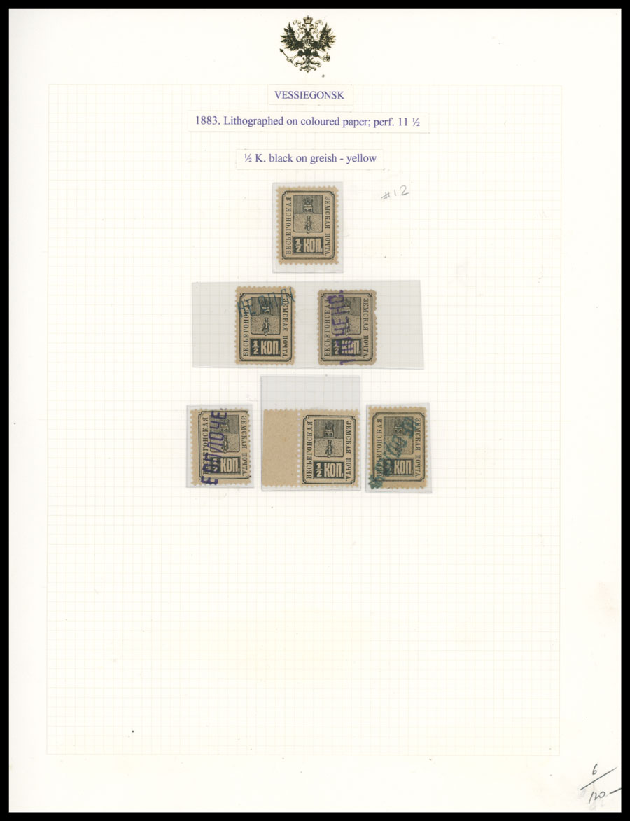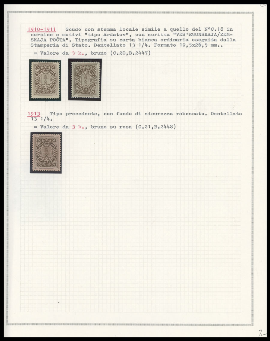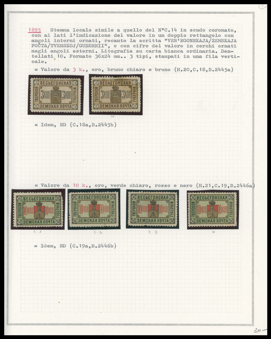 1871-1913, 49 stamps (apparently all are unused), arranged on six pages from a collections of Italian origin, starting with rectangular Arms design, then Arms in oval with No.8, and Shield with Arms and Numerals on colored paper, including two bocks of four, occasion flaws possible, generally full/part of OG, some NH, most hinged, F/VF, vast majority is from Bianchi Collection, Schmidt #1-23, C.v. is over $1,600, Est. $800-$1,000, Schmidt #1-23