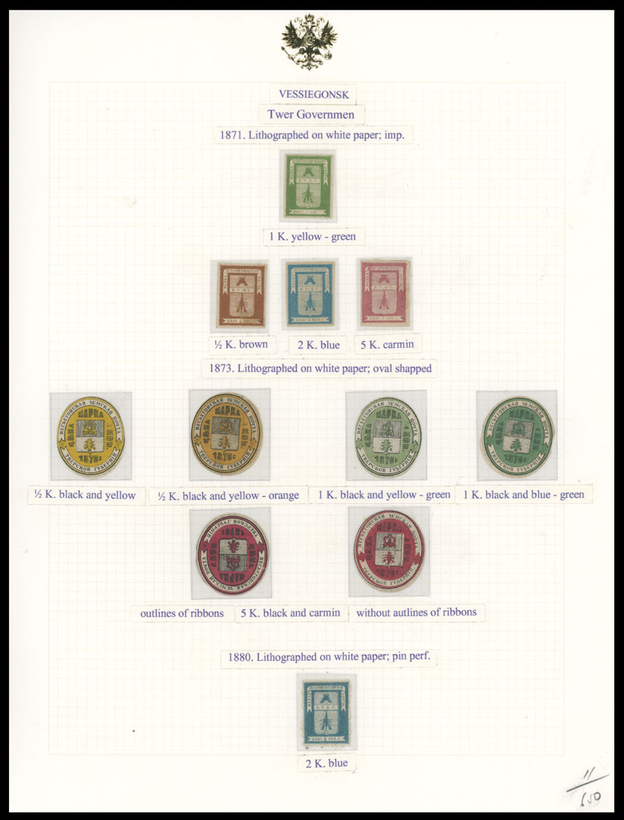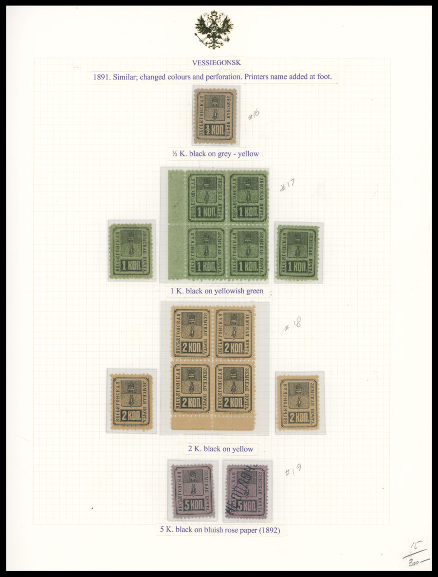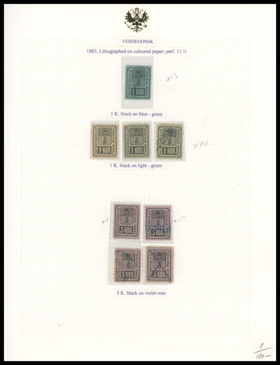 1871-1913, 49 stamps (apparently all are unused), arranged on six pages from a collections of Italian origin, starting with rectangular Arms design, then Arms in oval with No.8, and Shield with Arms and Numerals on colored paper, including two bocks of four, occasion flaws possible, generally full/part of OG, some NH, most hinged, F/VF, vast majority is from Bianchi Collection, Schmidt #1-23, C.v. is over $1,600, Est. $800-$1,000, Schmidt #1-23