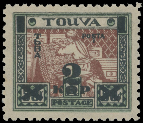 1932, Roman Alphabet, black trial surcharge 2k on 50k black, green and red brown, full OG, NH, VF and rare, according to V. Ustinovsky only one sheet of 80 these proofs has been produced, Est. $500-$600 , Scott #30